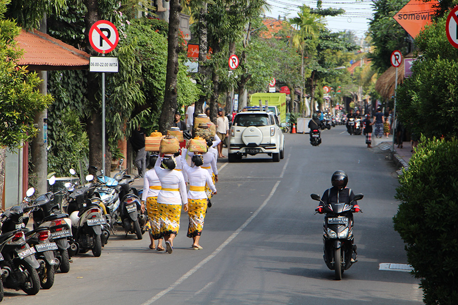 Nous sommes partis de Lyon hier et nous arrivons à l'aéroport de Denpasar (Bali) à 19h30. Notre hôtel nous a envoyé un chauffeur (payant, nous y reviendrons ^^) pour nous ramener à l'hôtel au centre d'Ubud à environ une heure de route. Nous faisons donc la route en discutant avec Yantu, notre chauffeur, qui parle pas trop mal anglais. Comme il fait déjà nuit, nous ne voyons malheureusement pas grand chose si ce n'est le trafic monstre avec ses nuées de scooters et ses klaxons à torts et à travers :)