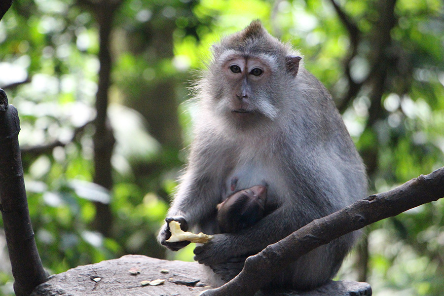 Nous prenons ensuite la direction de la forêt des singes d'Ubud. Située en plein centre ville, il s'agit d'un grand parc regroupant une centaine de singes ! Il y a des bébés avec leurs parents et c'est super mignon, même si certains se battent de manière assez agressive...c'est incroyable de voir comme ils ressemblent aux humains, ils ont des gestes et des mimiques qui sont vraiment les mêmes que les nôtres !