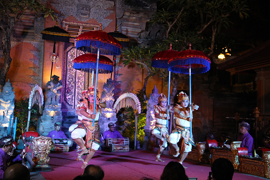 Nous rentrons au centre ville à la nuit tombée, tout juste à temps pour se rendre au Ubud Palace, temple très connu pour ses danses balinaises. Nous assistons donc au spectacle qui a lieu chaque soir. Les danses proposées ne sont pas toujours les mêmes mais globalement, ces spectacles racontent tous des histoires liées aux Dieux. Les costumes sont splendides et les danseurs et danseuses impressionnent avec leurs gestes si millimétrés !