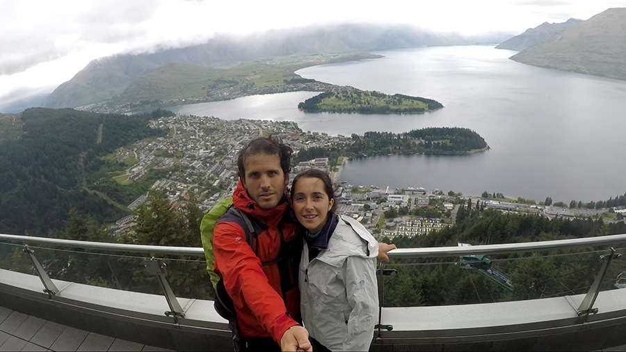 Une petite heure de marche plus tard, nous voilà au point de vue. L'endroit ressemble à un parc d'attraction avec restaurant, boutique souvenirs, piste de luge à roulette, et bien sûr horde de touristes ! Malgré tout ça et le mauvais temps, la vue reste belle sur Queenstown et le lac.