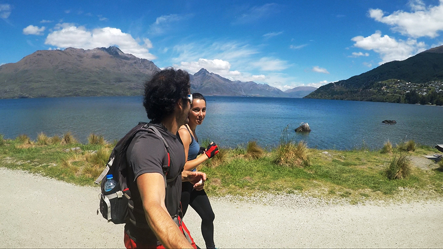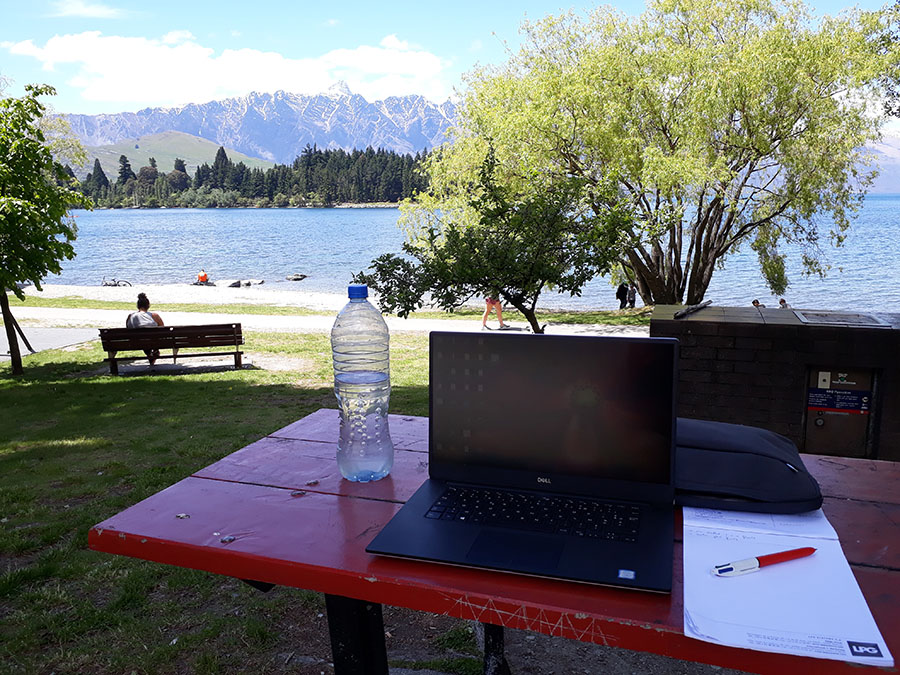 Nous nous retrouvons ensuite à midi pour manger et passons le reste de l'après-midi à envoyer des CV et publier sur le blog. La lumière de fin de journée sur les Remarkables et le lac est sublime !