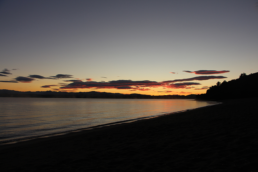 Comme prévu, les 5km dans la forêt se déroulent sans encombre. Nous plantons la tente à Brod Bay avec une super lumière de fin de journée. En plus ça tombe bien, Jean-Yves a planqué la bouteille de rouge dans le sac pour l'apéro ^^