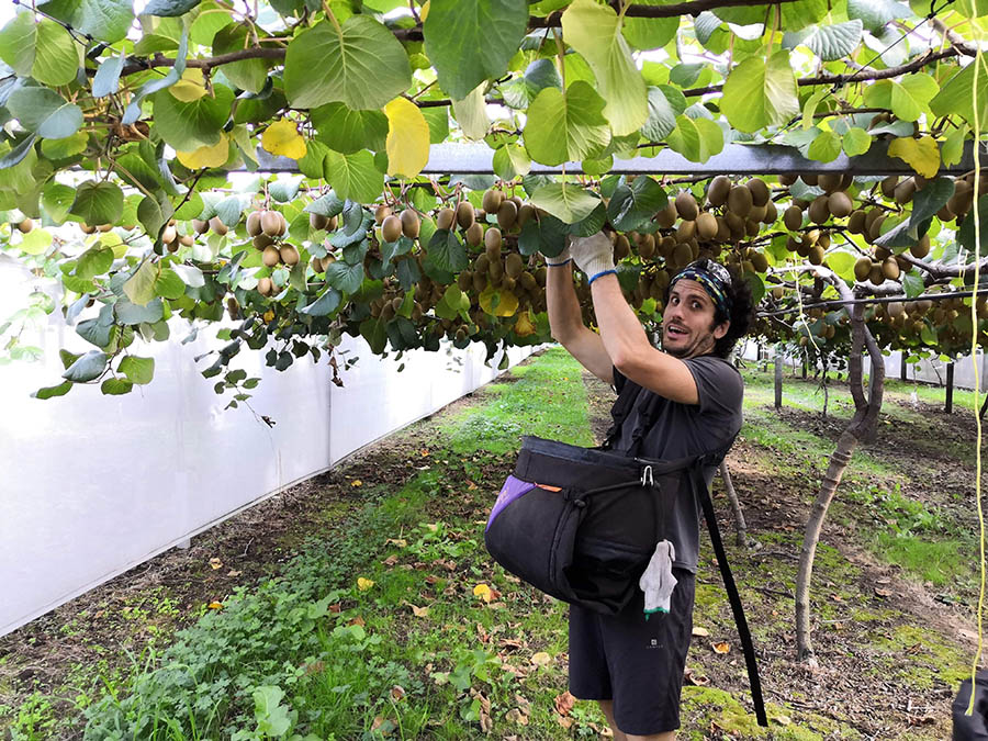 Thibault passe par tous les postes de l'usine de conditionnement : tray preparing (préparation des boites), packing (emballage des kiwis), stacking (empilage de boites, le plus fun mais le plus physique). Le travail dans les kiwis est très dépendant de la météo car quand il pleut, il n'y a pas de cueillette et donc le jour suivant il n'y a pas de kiwis à emballer...donc pour rentabiliser au mieux ces deux semaines de travail, durant les jours off, Thibault va faire la cueillette des kiwis sous contrat avec une autre entreprise. Et oui ici on trouve vraiment du travail facilement :) De plus, Yolaine et Jules, les amis Québécois rencontrés dans les cerises rejoignent Thibault dès la deuxième semaine, aussi bien à l'usine qu'à la cueillette. Cela fait une bonne équipe car Thibault fait aussi la connaissance d'autres français à l'usine : Corentin, Léa et Simon. Le rythme des douches repas au bord de l'océan puis des nuits au domaine est prit ! Thibault prend quand même deux jours off pour rentrer voir Aurélie et la famille Gillum :)