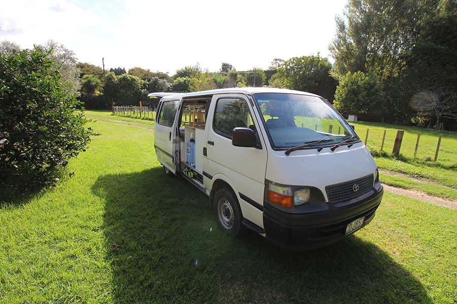 Nous vendons notre fidèle compagnon de voyage après quelques sept mois de voyage. Van provenant d'une famille kiwie, nous sommes la première génération de backpackers. Le Toyota Hiace est un classique et une valeur sure en NZ, extrêmement fiable, nous le vendons avec pas mal d'accessoires et d'outils.