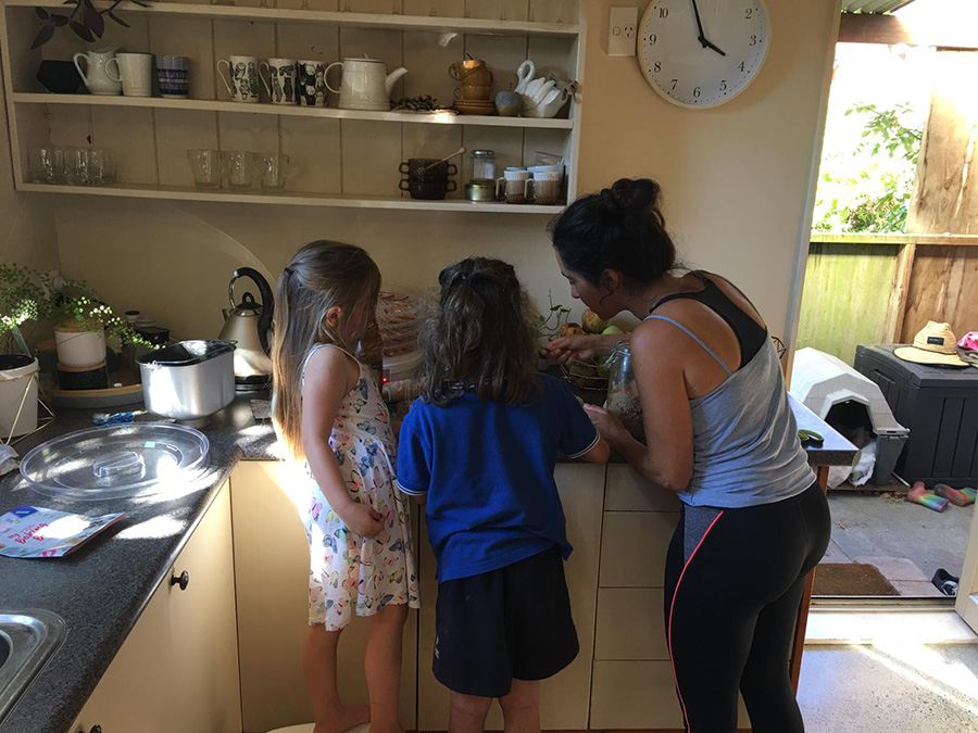 Durant ces 3 semaines, nous aidons la famille Gillum du mieux que nous le pouvons. Nous peignons une pièce, branchons les prises de courant et les lampes, finissons de désherber le jardin pour l'hiver, cuisinons de délicieux plats, réparons ce qui est cassé, coupons la pelouse, faisons découvrir les poï aux enfants, etc...et surtout nous partageons de super moments avec toute la famille avec les discussion du brunch avec Amy, les matchs de rugby league avec Shane, les danses et les jeux avec les enfants ! Nous nous sentons davantage chez des amis que nous aidons quotidiennement que chez des inconnus où nous sommes bénévoles. Nous sommes vraiment heureux de finir notre voyage en NZ comme cela :) Nous profitons également du temps passé dans la région pour monter sur la Papamoha hill et pour aller voir les Kaiate falls.