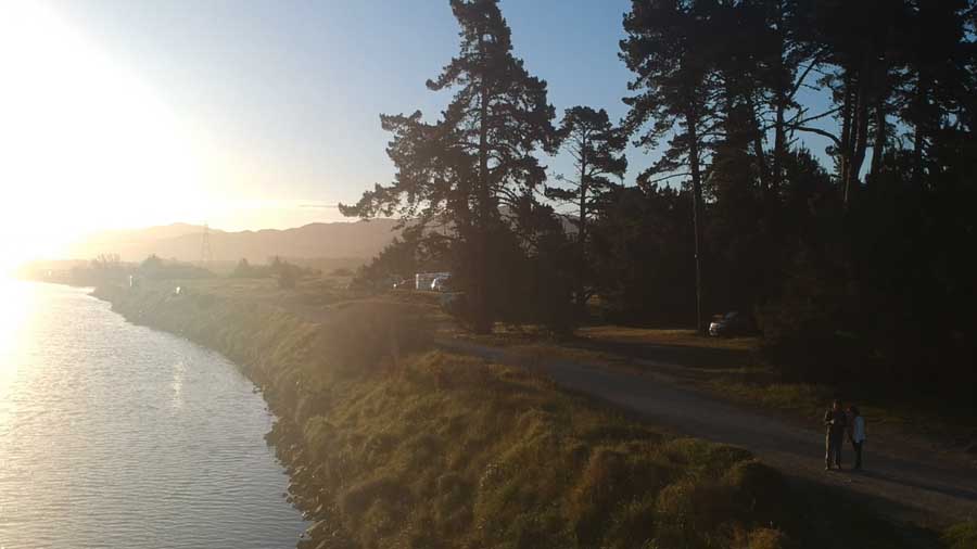 Arriver au premier parking gratuit, celui ci est fermé pour travaux...nous continuons donc sur une quinzaine de kilomètres pour en trouver un autre, situé le long d'une rivière qui se jette dans l'océan, au Wairau Campsite. Nous ne sommes pas déçu, le camping est situé au bout d'une gravel road entouré de vignoble, c'est superbe !