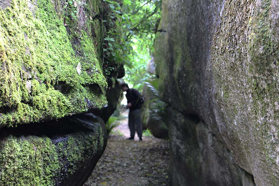Comme un peu partout dans les campings, il n'y a pas de poubelles. Nous demandons donc au ranger du camping où jeter nos poubelles, il nous indique une déchetterie sur la route. Arrivée là bas celle-ci est fermée sans raisons...mais juste à côté de la déchetterie se trouve un panneau où est indiqué « Labyrinth Rocks ». Curieux, nous allons voir et nous découvrons un parcours gratuit entre des rochers naturels créé par un géologue. Le site est ponctué de petits objets à trouver entre les rochers ! De plus, la jungle a repris ses droits dans le labyrinthe lui conférant un réel aspect « Indiana Jones » :)