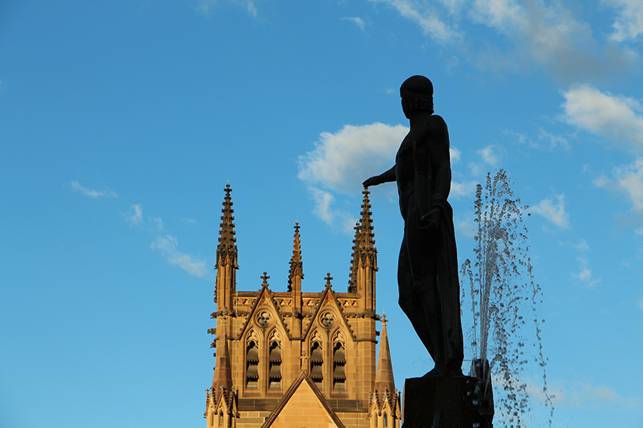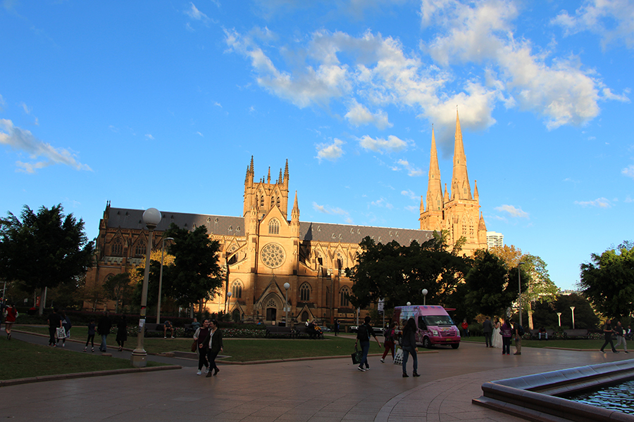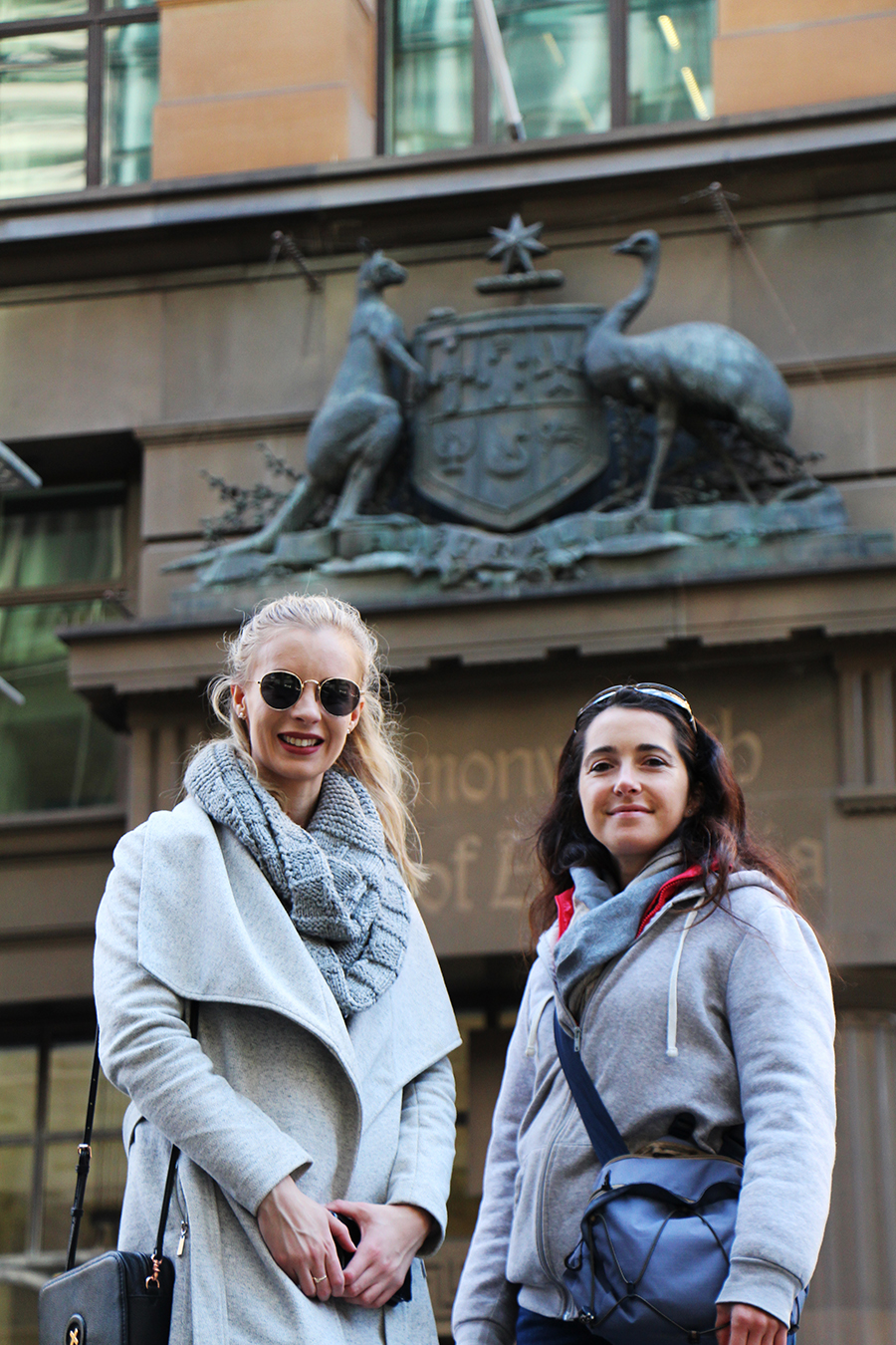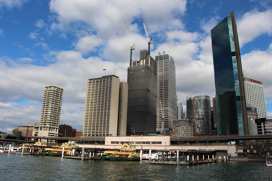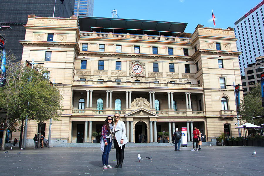 Aujourd'hui, nous partons à l’assaut du centre ville de Sydney avec Ashleigh ! Wade nous rejoint dans l'après-midi car le matin il entraîne l'équipe féminine locale de hockey sur gazon :) Nous prenons donc le train depuis Engadine pour le centre ville. Nous choisissons de sortir plus tôt que prévu pour finir la route à pied à travers la ville. Nous sommes frappé par l'immensité des buildings ! Tout semble tout neuf et tout propre :) Nous flânons entre les building en passant dans certains bâtiments qui pour la plupart abritent des grands centres commerciaux.