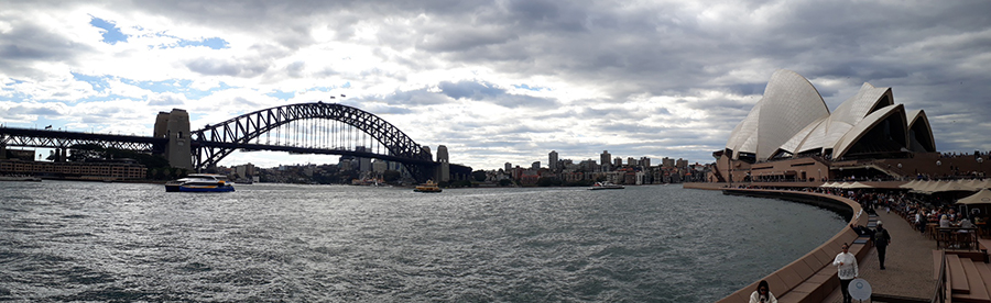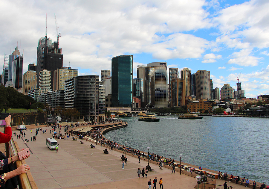 Nous arrivons ensuite à la marina où nous avons une superbe vue sur le mythique opéra et sur le pont de Sydney. Nous allons jusqu'au pied de l'opéra. L'ensemble de la marina est uniquement accessible aux piétons ce qui est très agréable. Nous nous arrêtons donc manger dans l'un des nombreux restaurants avec vue :)