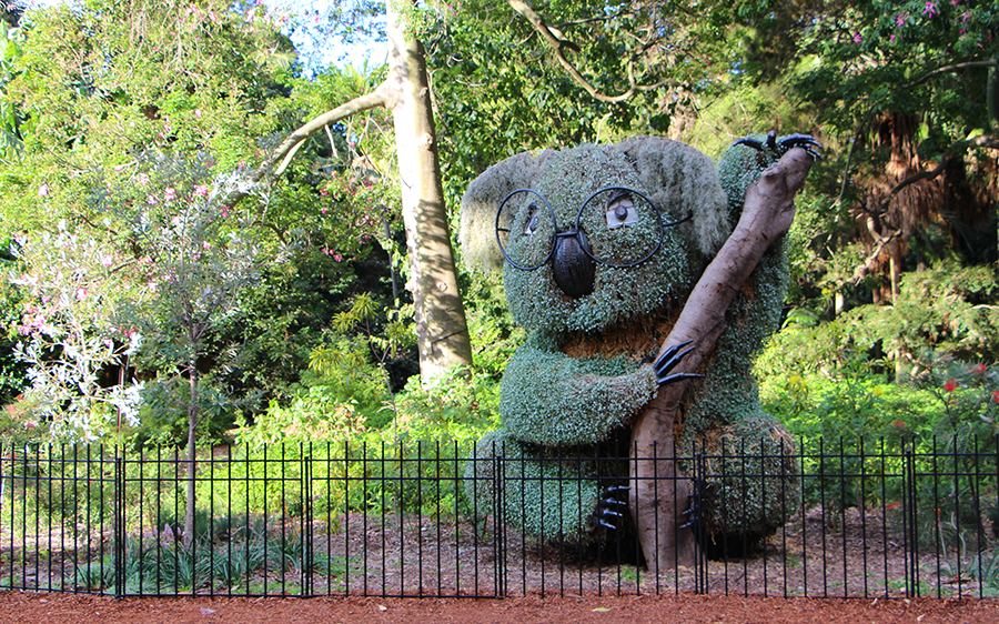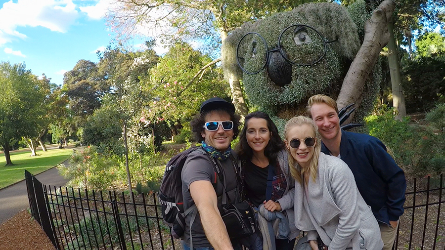 Nous filons ensuite au jardin botanique de Sydney, non loin de l'opéra où nous rejoignons Wade. Le jardin est magnifique ! Nous sommes toujours agréablement surpris car les parcs et jardins (de toute la ville, non pas seulement le jardin botanique) sont plein d'animaux que nous, en France, nous ne voyons que dans les zoo, notamment ces très étranges « Bin Chicken » (traduisez « Poulets poubelles ») et leurs immenses becs ! Nous voyons des perroquets magnifiques dans le moindre arbre. Nous nous en amusons à chaque fois, ce qui fait amuse Ashleigh et Wade, qui n'y prête plus la moindre attention ^^ Et qui même détestent les Bin chicken qui sont pour eux l'équivalent de nos pigeons en pire car ils viennent quémander dès qu'on s’assoit sur un banc :)