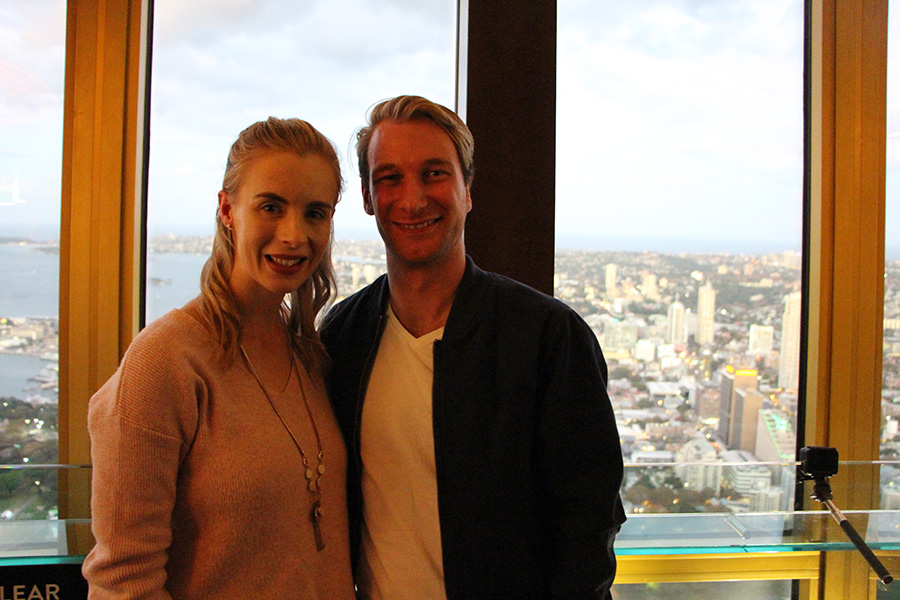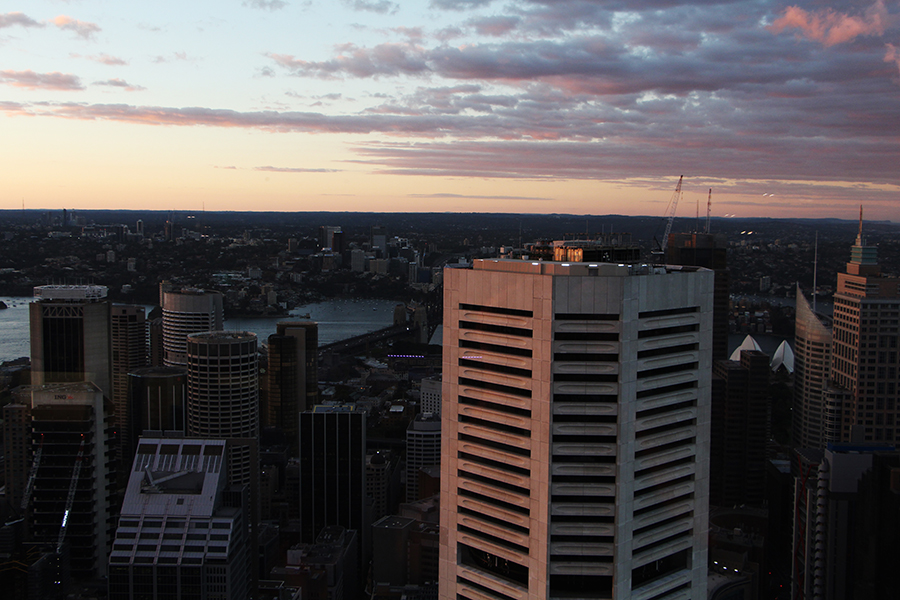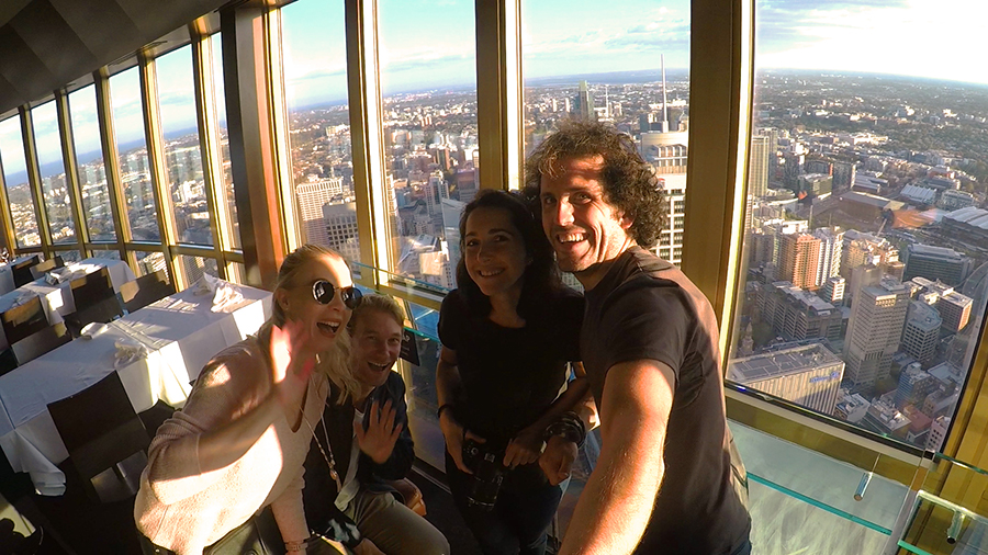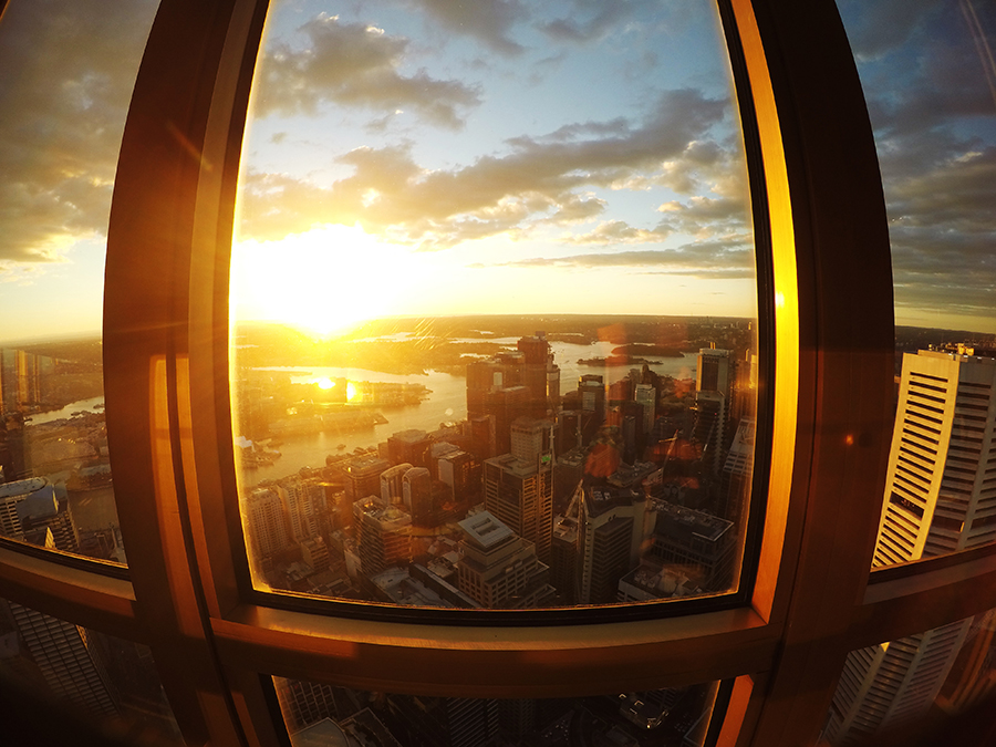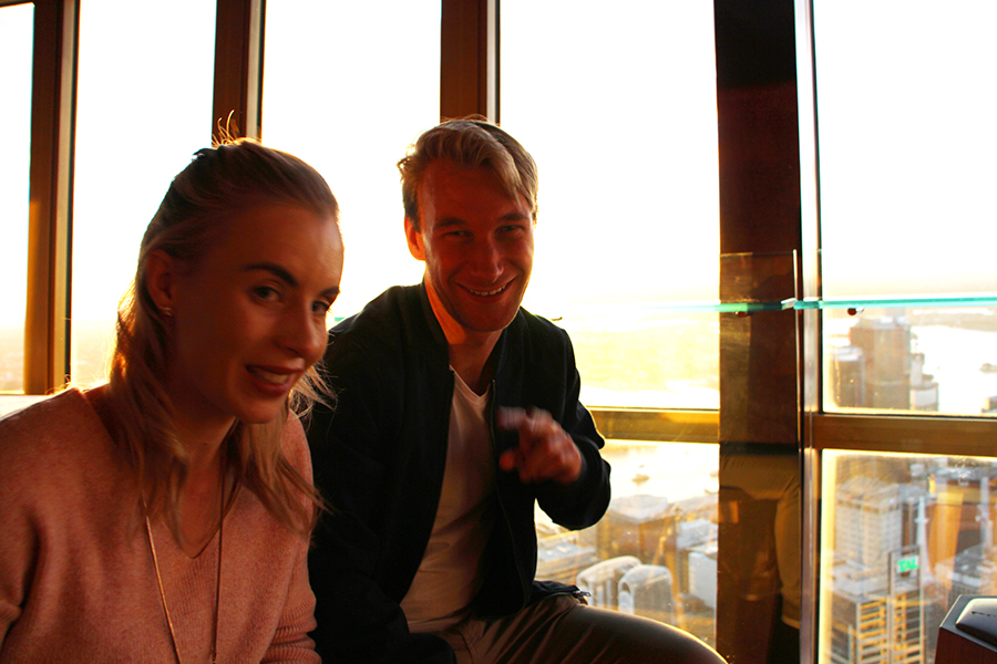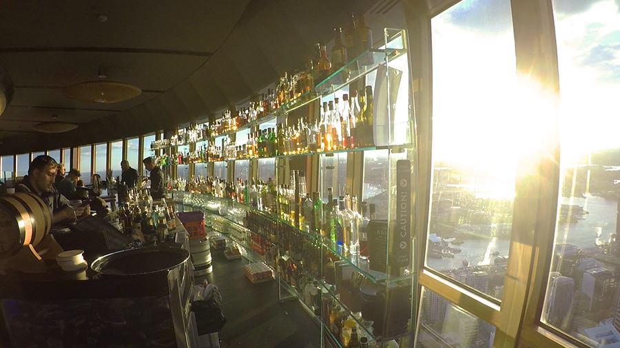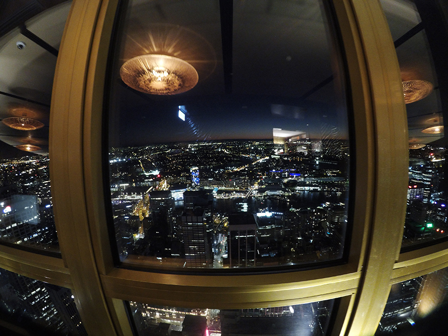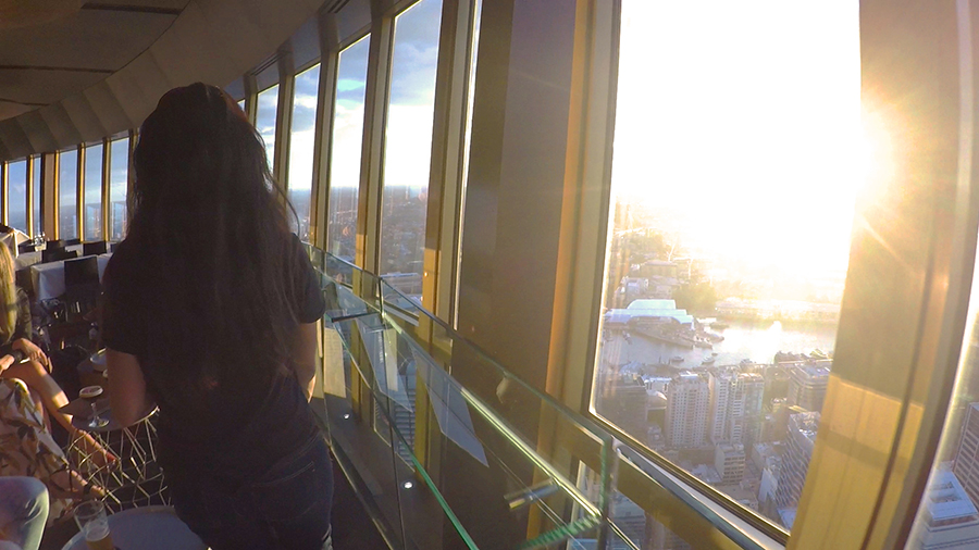 Nous filons ensuite pour l'apéro en haut de la sky tower, plus haute tout de Sydney, qui abrite un bar panoramique en son sommet ! Nous assistons au coucher de soleil sur la ville alors que le bar panoramique tourne autour de la tour offrant une vue 360°, c'est sublimeeeee ! Un grand merci à Ashleigh et Wade pour ce moment incroyable.