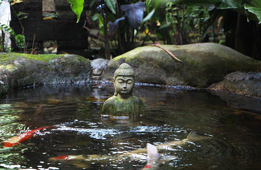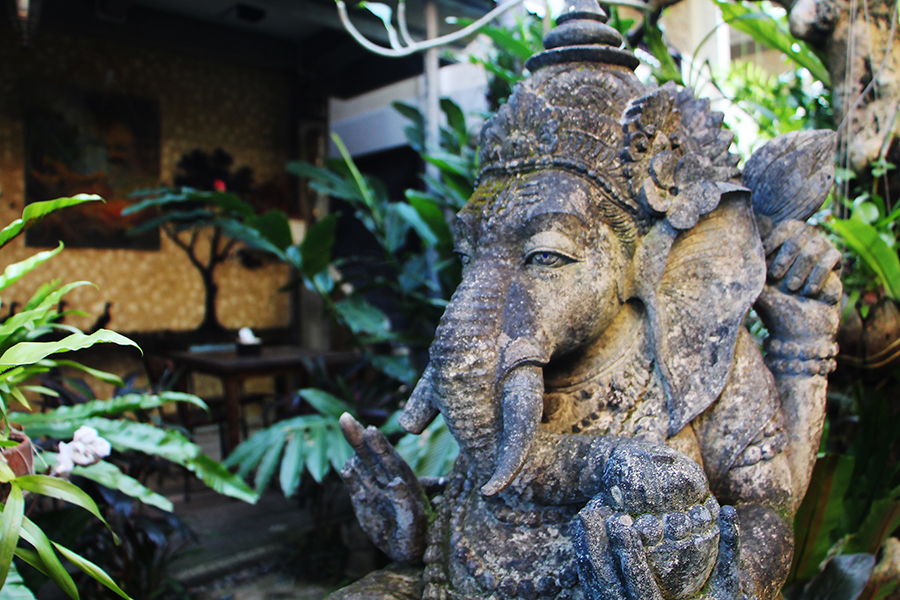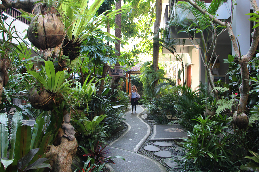 Aujourd'hui nous avons prévu une journée repos pour se remettre du jet lag. Nous pensons donc simplement aller faire un petit tour en ville pour découvrir les alentours et surtout commencer à organiser les quelques jours à venir. Au moment où nous descendons au bar de l'hôtel pour le petit déjeuner, nous découvrons le joli patio de l'hôtel très « indonésien » ^^