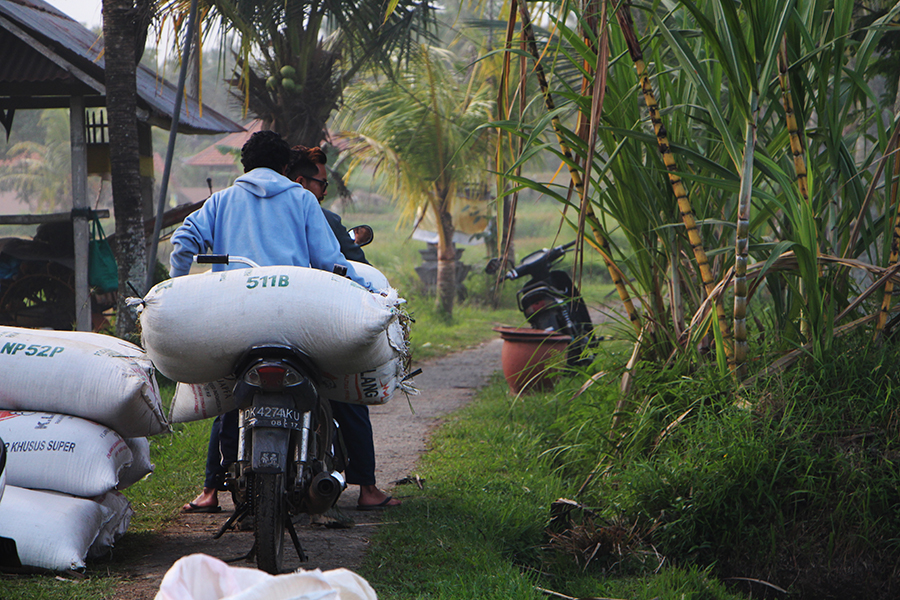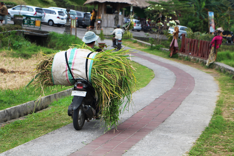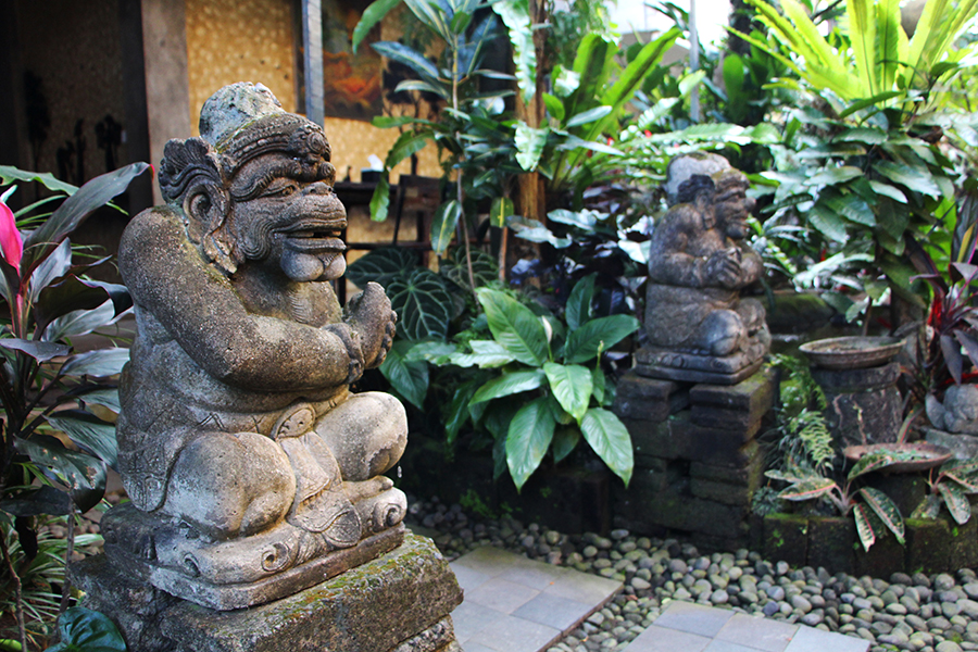 Nous sommes partis de Lyon hier et nous arrivons à l'aéroport de Denpasar (Bali) à 19h30. Notre hôtel nous a envoyé un chauffeur (payant, nous y reviendrons ^^) pour nous ramener à l'hôtel au centre d'Ubud à environ une heure de route. Nous faisons donc la route en discutant avec Yantu, notre chauffeur, qui parle pas trop mal anglais. Comme il fait déjà nuit, nous ne voyons malheureusement pas grand chose si ce n'est le trafic monstre avec ses nuées de scooters et ses klaxons à torts et à travers :)