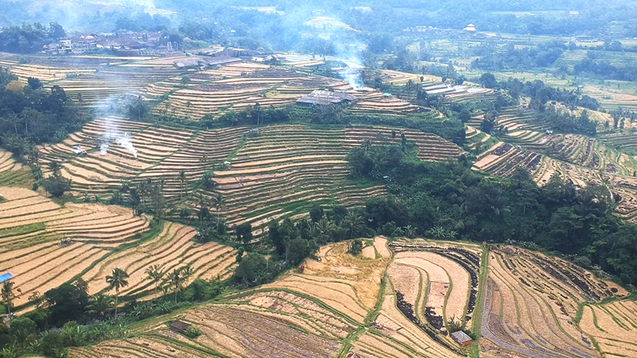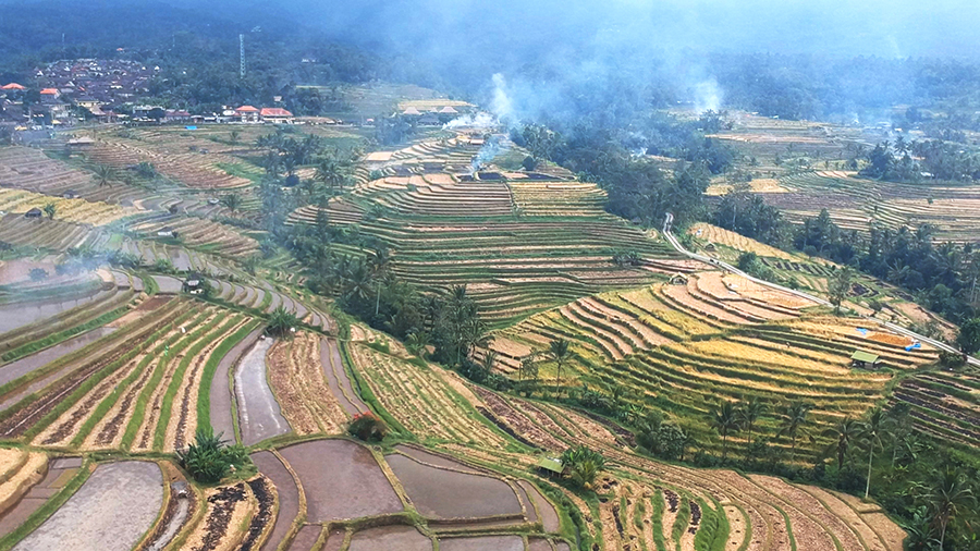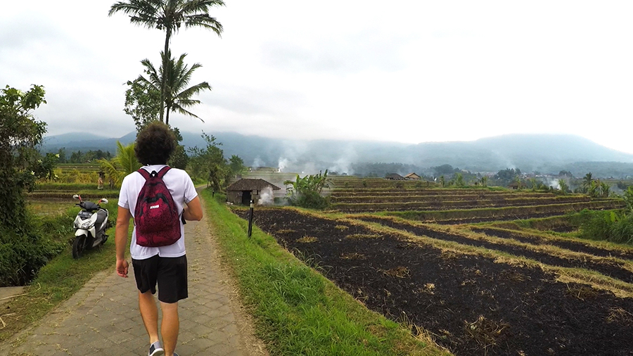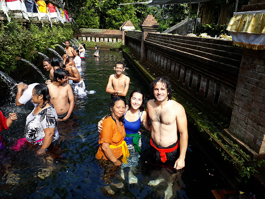 Nous arrivons en Indonésie où nous prenons nos premières marques à Ubud, centre touristique de l'île de Bali. Après s'être purifiés dans une fontaine sacrée, nous y découvrons la cuisine balinaise à travers un cours de cuisine, la forêt des singes, les rizières. Nous profitons également d'être à Ubud pour ne explorer les alentours, des rizières de Jatiluwih, à la cascade de Nung Nung en passant par le temple Danu Beratan.