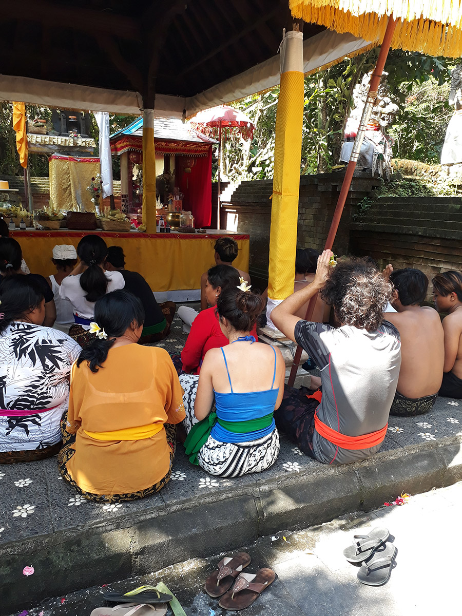 Nous comprenons en discutant avec Mama qu'elle ne fait pas ça tout les jours. Nous ne sommes pas sur d'avoir tout bien saisi mais il semblerait qu'elle fasse cela uniquement les « bons » jours, durant lesquels elle sent qu'elle en a besoin ou les jours « exceptionnel » lorsqu'il y a quelque chose à fêter. Nous sommes donc super content d'avoir pu assister (et participer) à ça, d'autant plus dans un endroit très peu touristique, nous étions les seuls touristes et il n'y avait que des locaux, le genre d'expérience que l'on aime ! Nous avions prévu d'aller visiter une des fontaines sacrée les plus connues de Bali (Tirta Empul) et donc nous décidons finalement de ne pas le faire, ce qui sera un bon choix car nous rencontrerons par la suite des gens qui y serons allés et qui nous diront que c'est démesurément touristique ^^