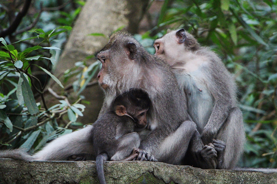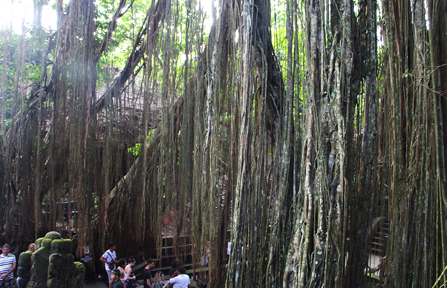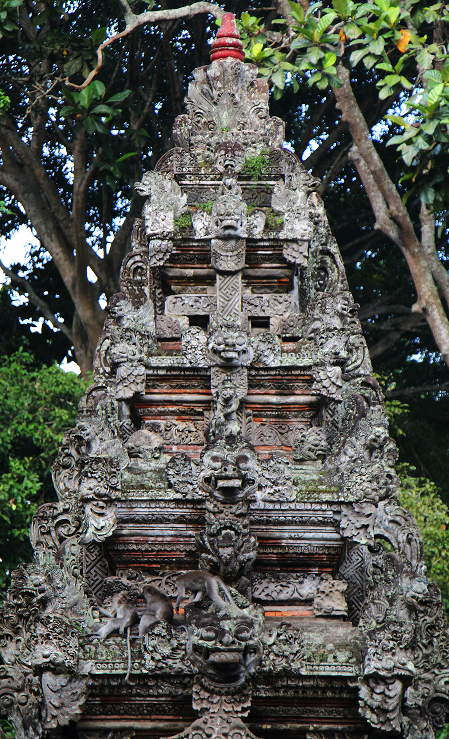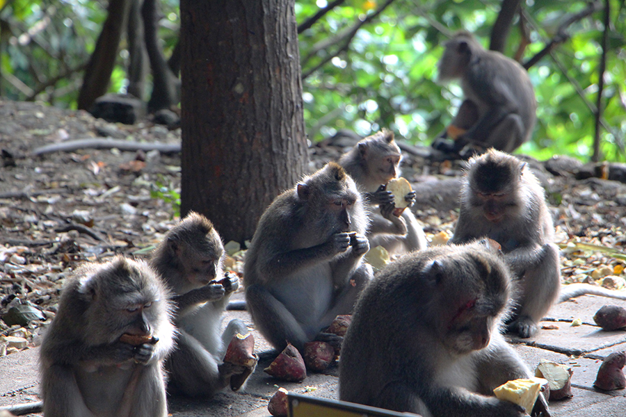 Nous prenons ensuite la direction de la forêt des singes d'Ubud. Située en plein centre ville, il s'agit d'un grand parc regroupant une centaine de singes ! Il y a des bébés avec leurs parents et c'est super mignon, même si certains se battent de manière assez agressive...c'est incroyable de voir comme ils ressemblent aux humains, ils ont des gestes et des mimiques qui sont vraiment les mêmes que les nôtres !