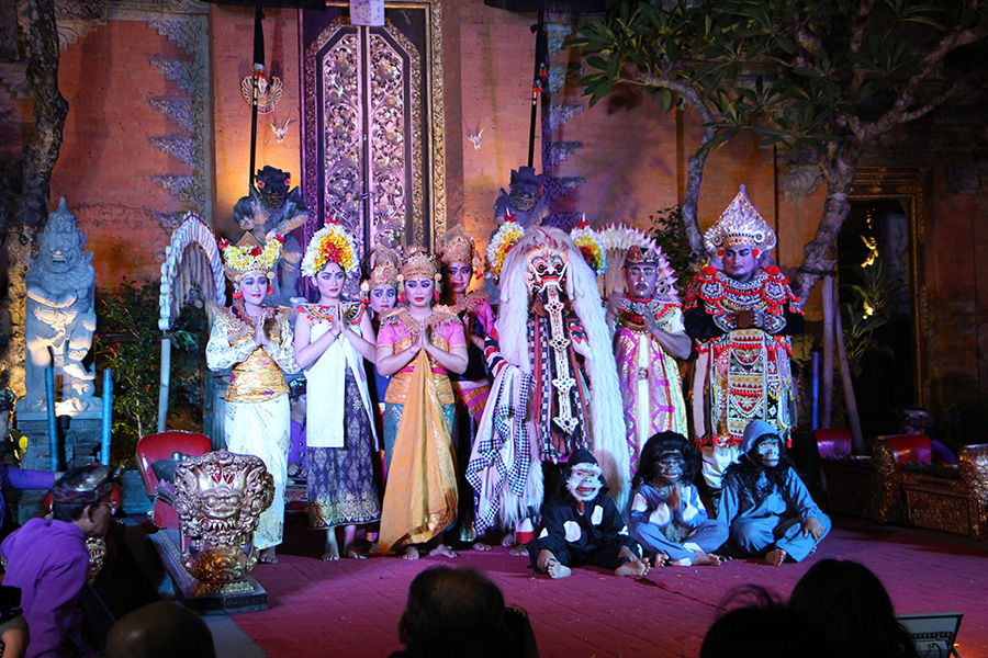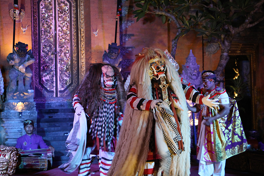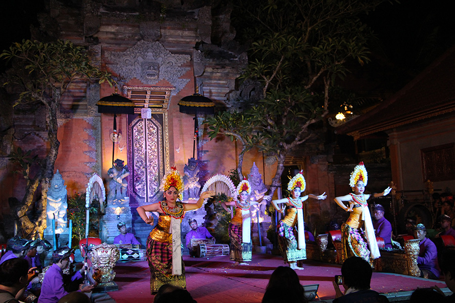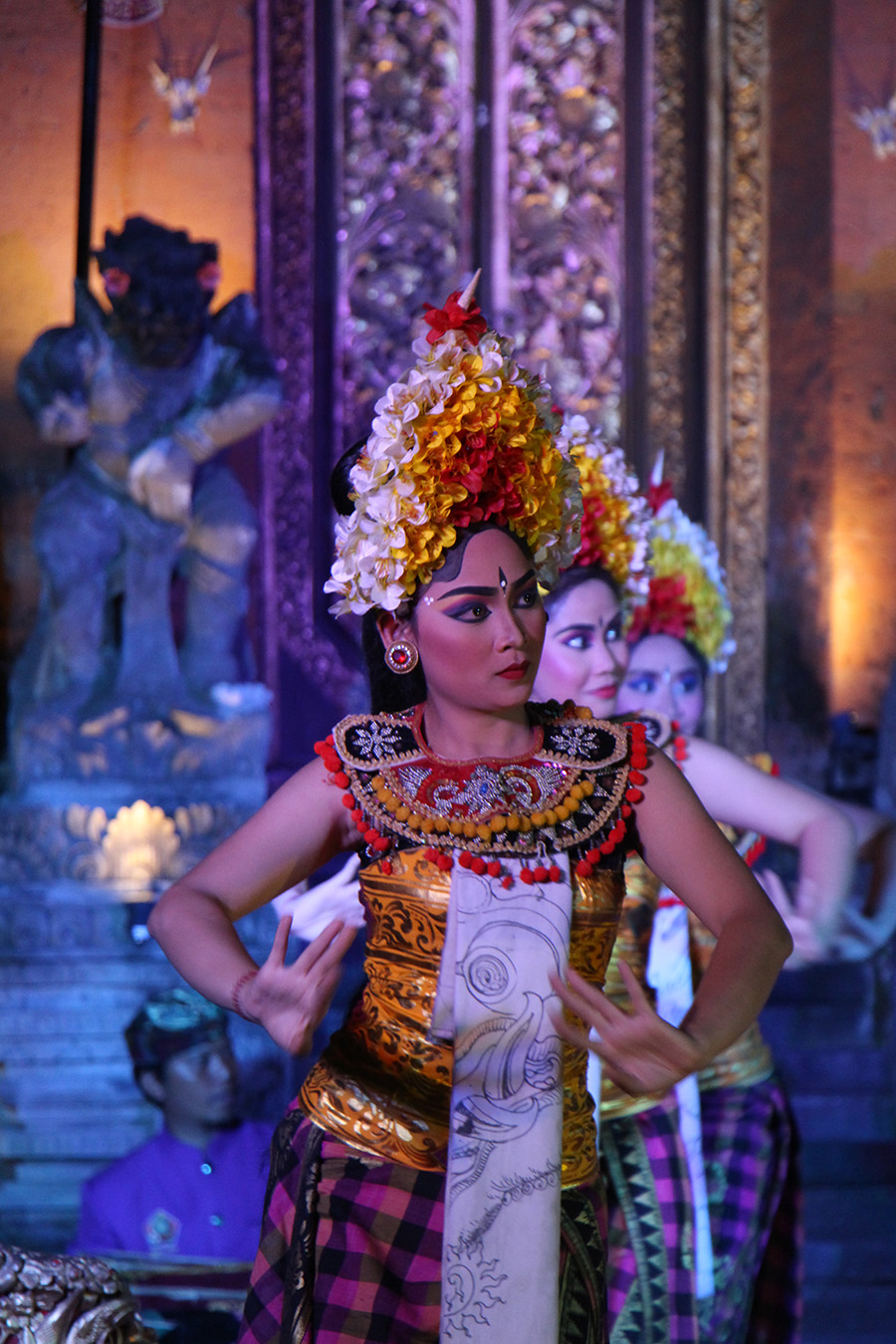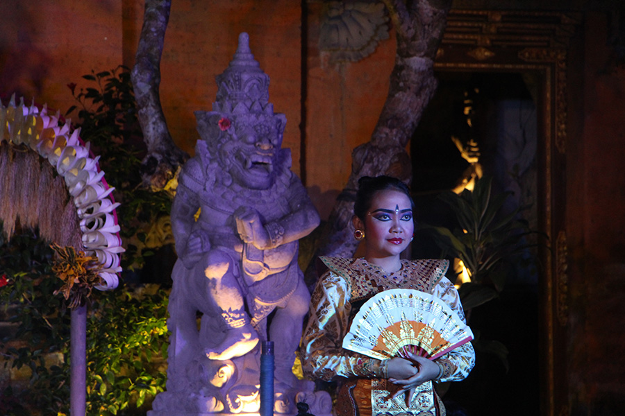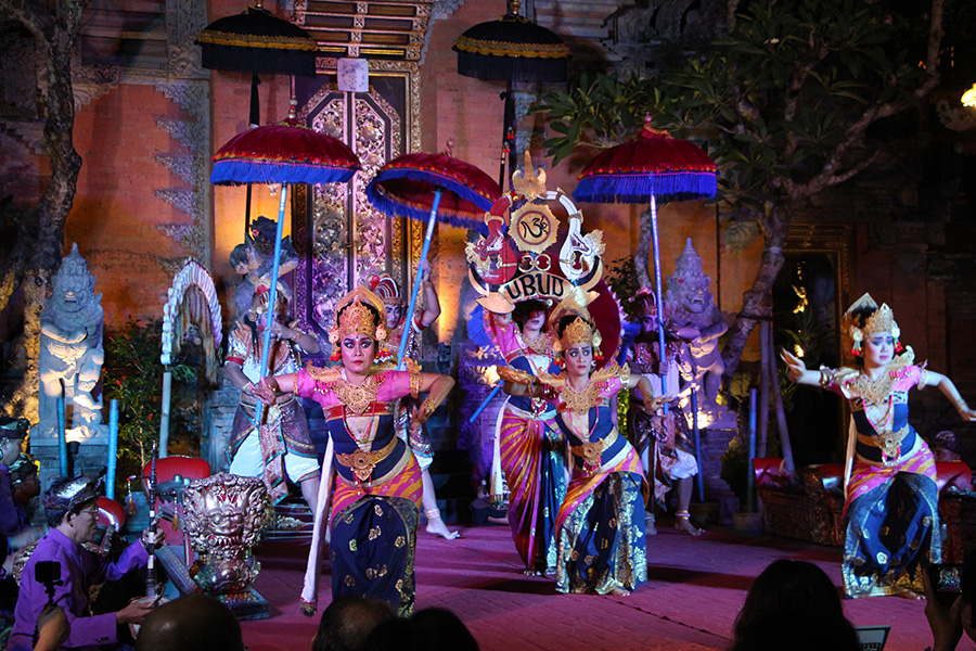 Nous rentrons au centre ville à la nuit tombée, tout juste à temps pour se rendre au Ubud Palace, temple très connu pour ses danses balinaises. Nous assistons donc au spectacle qui a lieu chaque soir. Les danses proposées ne sont pas toujours les mêmes mais globalement, ces spectacles racontent tous des histoires liées aux Dieux. Les costumes sont splendides et les danseurs et danseuses impressionnent avec leurs gestes si millimétrés !