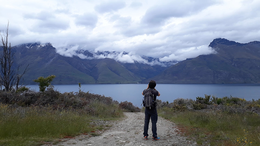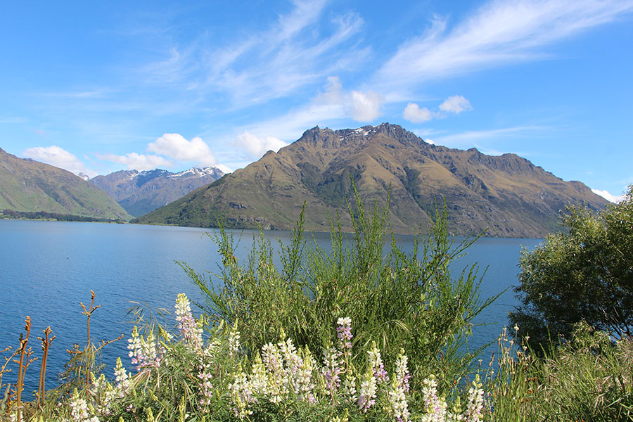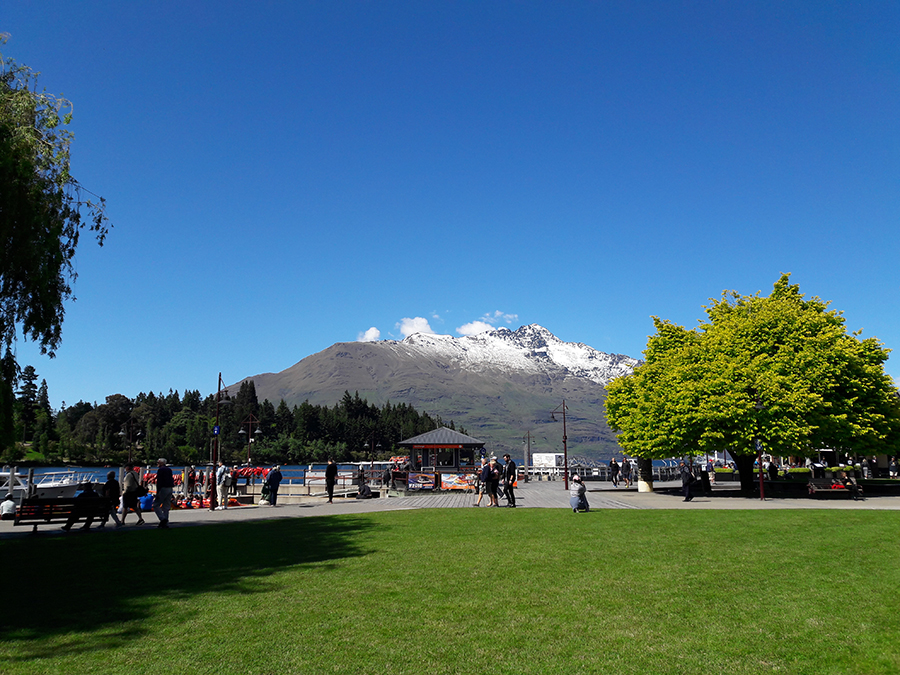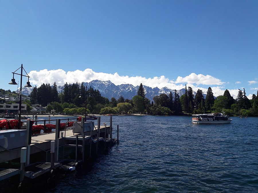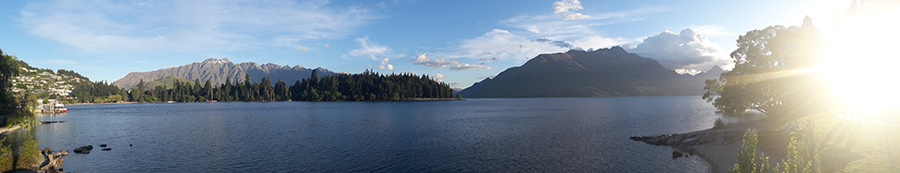 Nous nous retrouvons ensuite à midi pour manger et passons le reste de l'après-midi à envoyer des CV et publier sur le blog. La lumière de fin de journée sur les Remarkables et le lac est sublime !