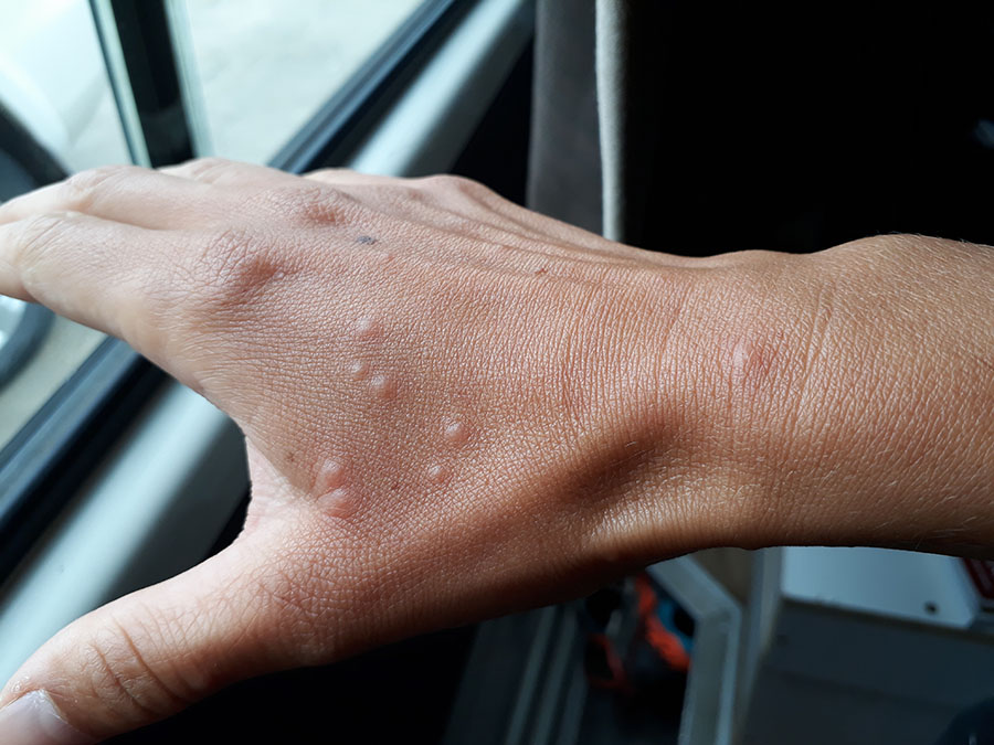 Par contre, le beau temps après des jours de mauvais temps, ça veut dire des sandflies en masse...et oui car on ne vous en parle plus depuis quelques temps mais sachez que les piqûres de ces saletés font partis du quotidien ici. La preuve en image avec la main d'Aurélie au réveil...