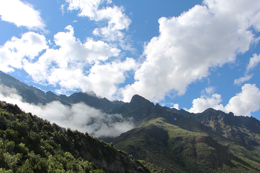 Au réveil, il y a des nuages accrochés aux montagnes une fois de plus mais cette fois il fait beau et c'est splendide !