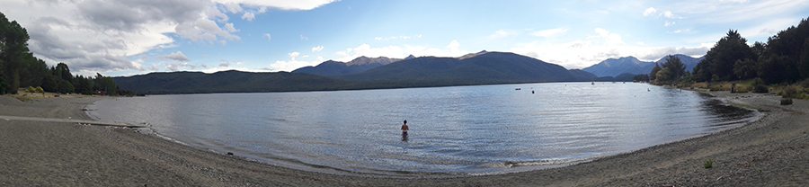 Nous rejoignons ensuite Claire & Jean-Yves, un couple d'amis de Valence qui finissent leur voyage d'un an autour du monde. Après l'Amérique du sud et l'Asie, ils finissent leur périple par la NZ, nous nous sommes donc tous organisés pour faire un bout de chemin ensemble ^^ C'est un réel plaisir de les voir, surtout dans un tel contexte, c'est vraiment sympa !! Nous nous rejoignons au bureau des randonnées pour récupérer nos pass pour les campings de la Kepler Track que nous attaquons demain. Nous mangeons ensemble puis nous nous séparons pour vaquer à nos occupations. Nous en profitons pour aller nous tremper dans le lac de Te Anau, histoire d'en vérifier la température, et bien elle n'est pas si froide :)