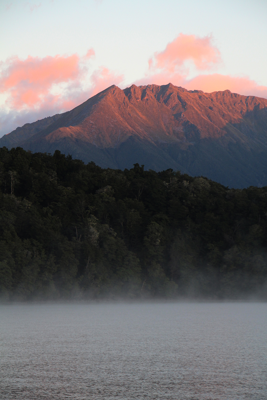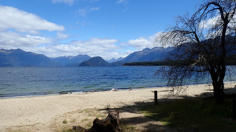 Nous avons décidé de nous reposer aujourd'hui en prévisions de la randonnée que nous allons faire dans quelques jours. Nous prenons la route pour le lac Hauroko sur une gravel road de 20 kilomètres. Le lac est beau et offre une vue sur les premières montagnes, annonçant une suite alléchante :) Malheureusement, mais comme prévu, une armée de sandfly nous attaque dès la sortie de la voiture...il est impossible (vraiment impossible) de rester sur place,il faut bouger en permanence, ce qui gâche pas mal la contemplation du lieu...on se ballade 30 minutes sur les bords du lac puis on remonte en van et on se tire vite fait d'ici !!