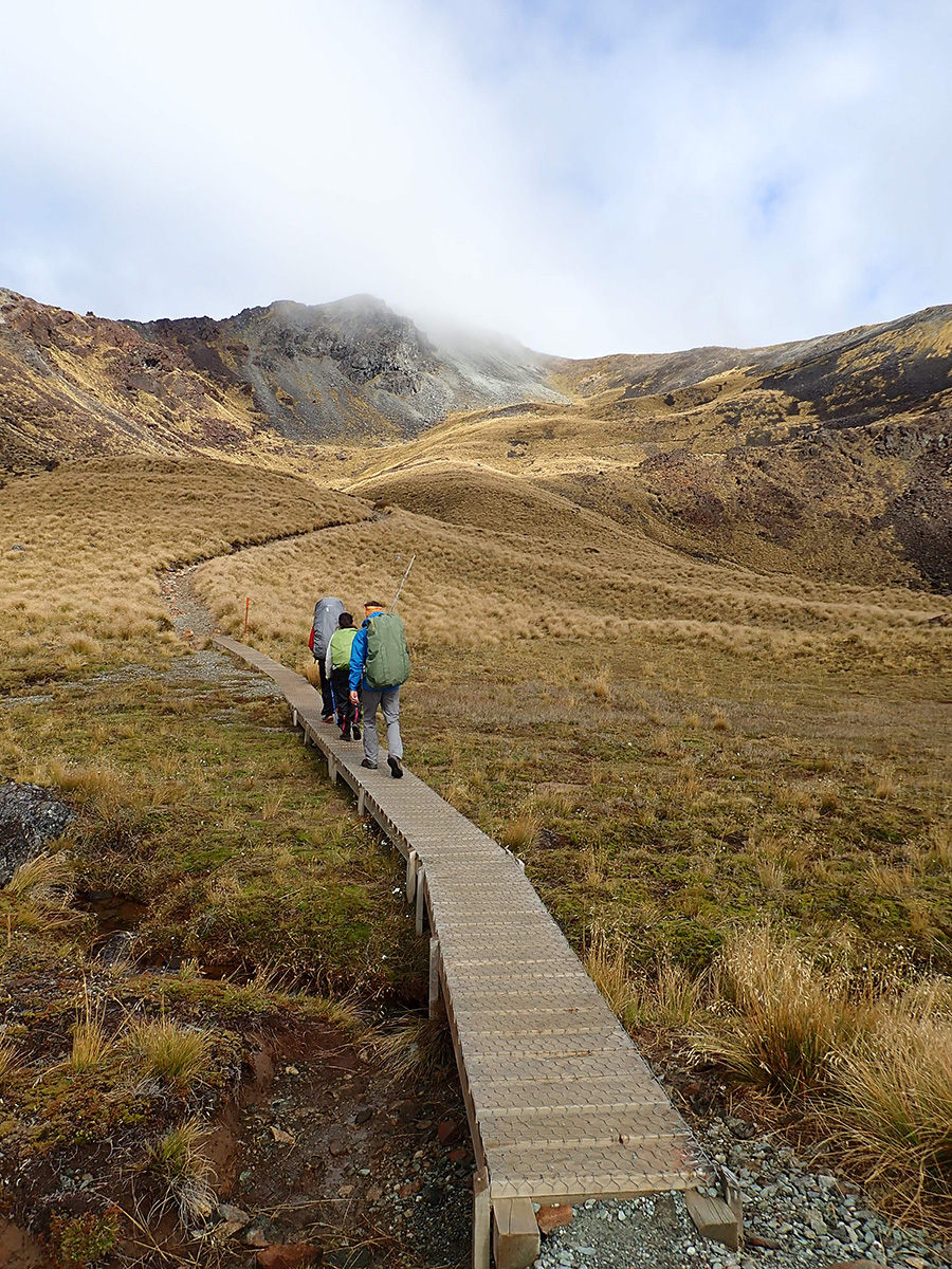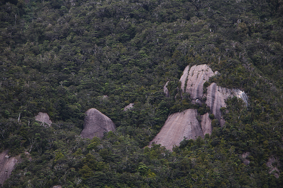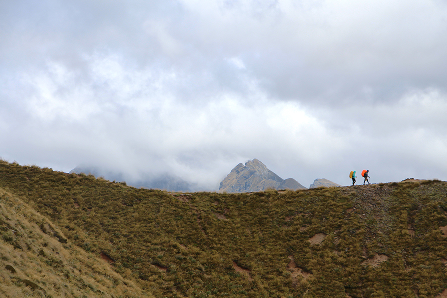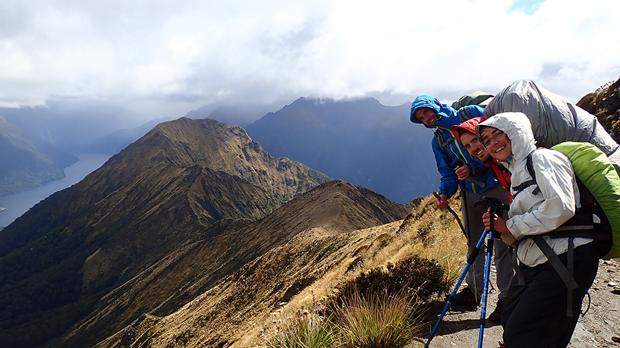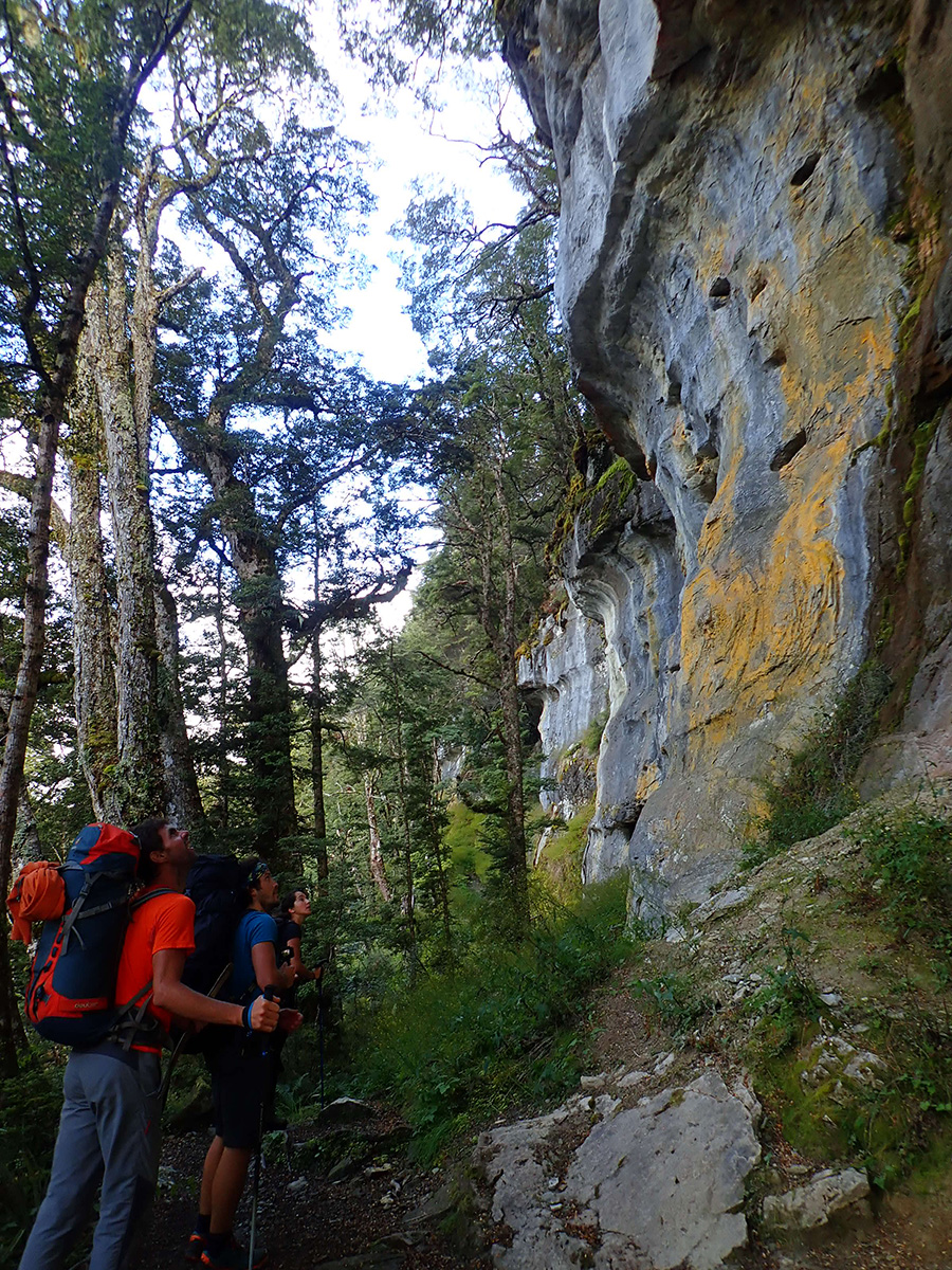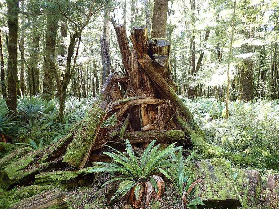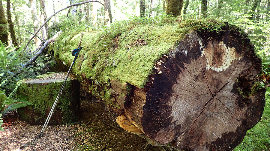 Nous sortons ensuite de la forêt pour une belle vue dégagée et un magnifique arc-en-ciel. Nous continuons jusqu'à la Luxmore Hut pour un petit goûter.