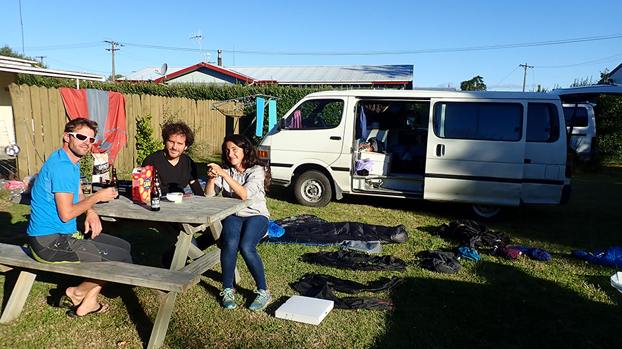 Nous passons faire quelques courses puis allons dormir dans le jardin d'une maison de Te Anau gracieusement mis à disposition. En effet, il s'agit de Jayde, une kiwie incroyable et incroyablement sympathique avions laquelle nous avions travaillé dans les vignobles de Cromwell. Incroyable car à l'époque elle cumulait travail dans les vignobles le jour, barmaid la nuit, aide aux personnes trisomiques le weekend, et tout ça en préparant son mariage du haut de ses 22 ans...elle nous a scotché :) Elle nous avait donc dit qu'un ami de son père possédait une maison à Te Anau et que nous pourrions éventuellement y séjourner, elle nous a donc donner l'adresse et nous y voilà ! Donc un ENORME MERCI à elle si elle lit ces lignes !! Sachant qu'il n'y a pas de freecamp à Te Anau et que le moindre camping coûte 25$ par nuit et par personne, ça nous rend vraiment bien service.