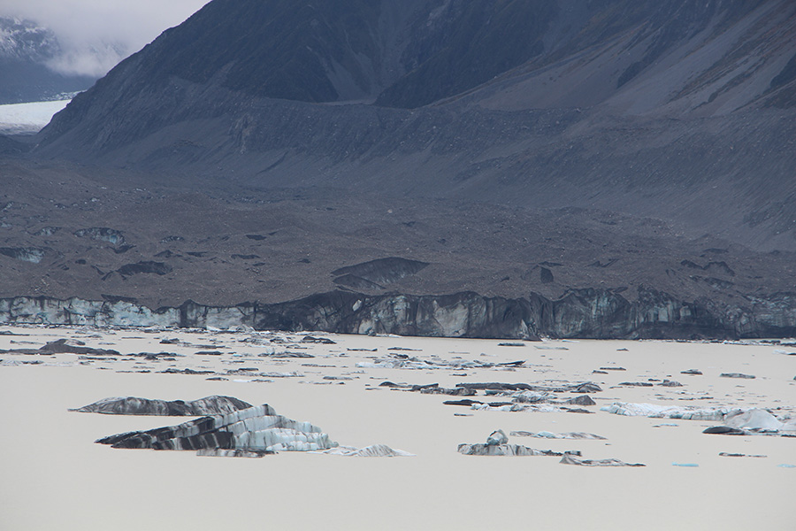 Nous savons que Claire & Jean-Yves (voir épisode 19) sont sur le camping du bout de la route. Nous ne tardons pas à les trouver, juste avant qu'ils ne quittent le camp, c'était moins une ^^ C'est super sympa de se retrouver et nous partons ensemble voir le Tasman Glacier situé dans la vallée d'à côté. C'est couvert et le glacier à bien fondu, c'est flippant une fois de plus...mais ça reste beau !