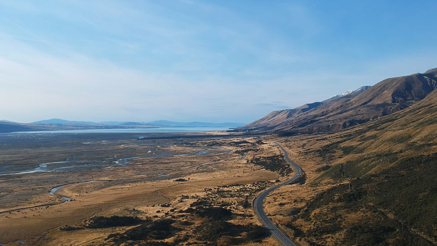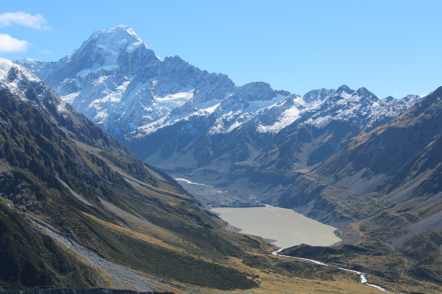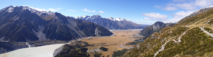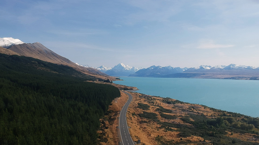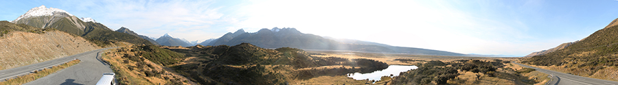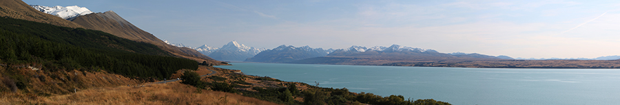 Nous faisons route vers le Peter's lookout, un point de vue impressionnant sur le super lac bleu Pukaki et le mont Cook, c'est sublime !