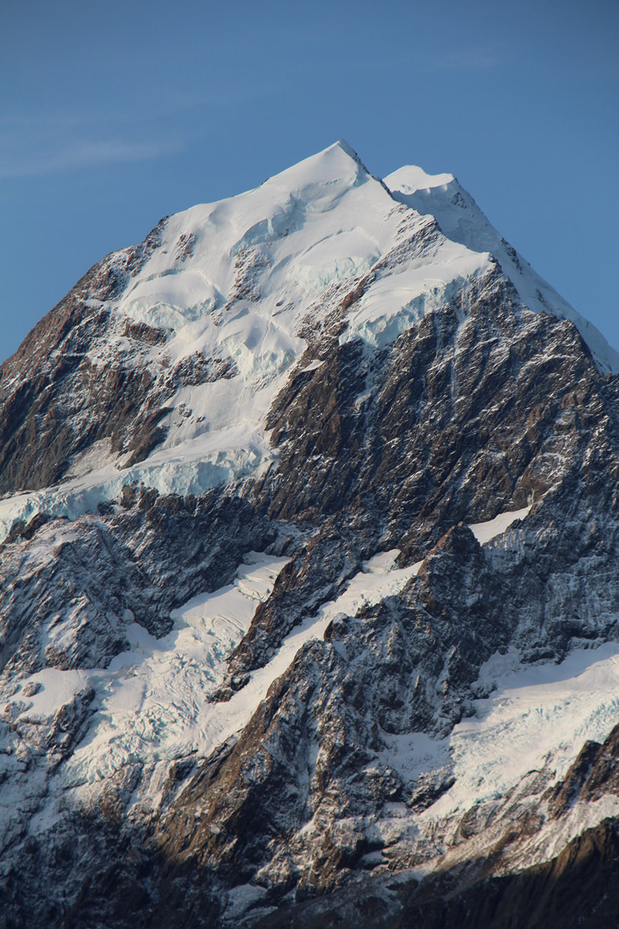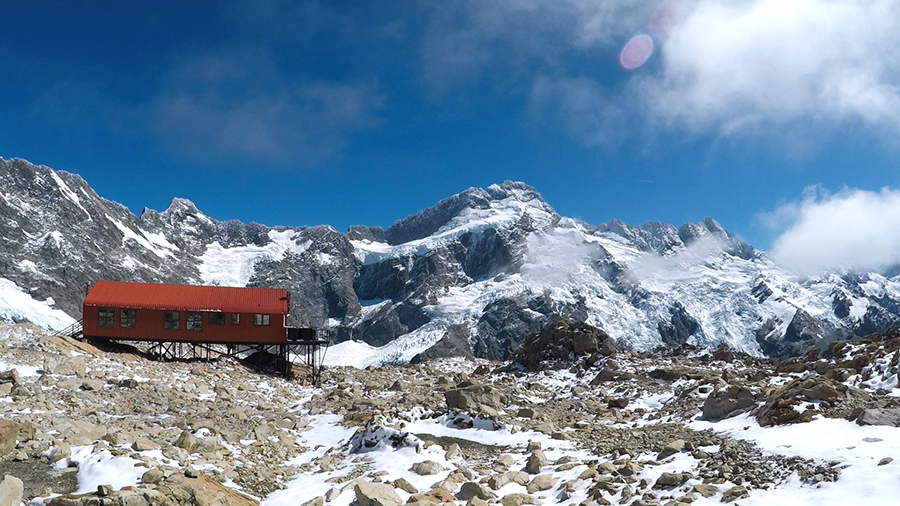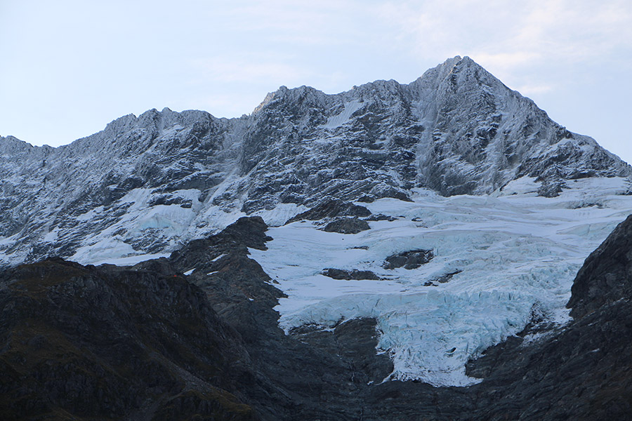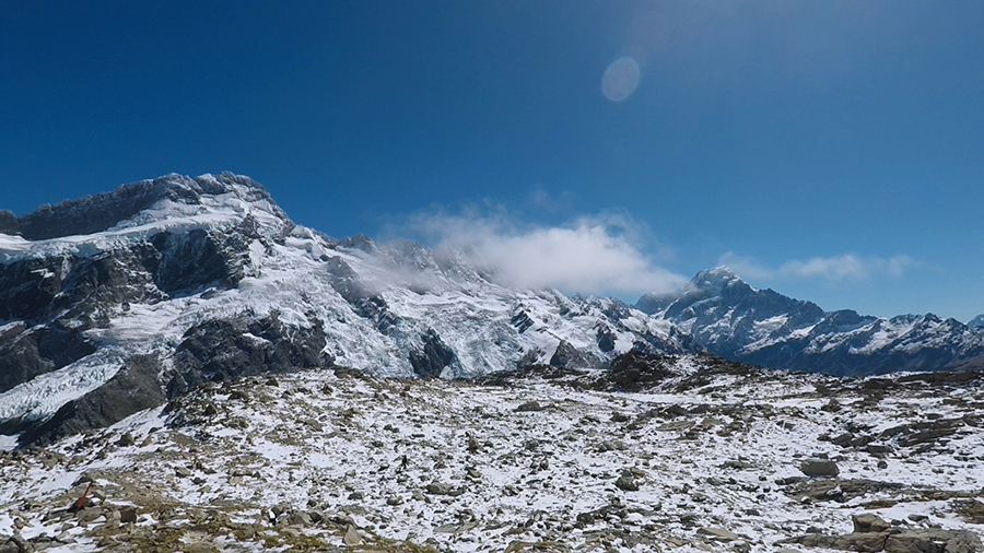 Aujourd'hui, réveil et départ matinal car le temps annoncé est au beau fixe et Thibault voudrait monter à la Mueler Hut en trail avant les touristes ^^ C'est donc parti pour 1200 mètres de dénivelé, la plupart en escalier creusé dans la montagne, ça fait les cuisses ! Thibault tirera même jusqu'au mont Oliver situé un peu au dessus du refuge et la récompense est vraiment là, avec la neige tombée la veille, le spectacle est sublime ! Pendant ce temps, Aurélie se rend à Kea Point dans la vallée puis monte les escalier jusqu'au point de vue de la Mueller Hut (le reste est un pierrier enneigé un peu engagé).