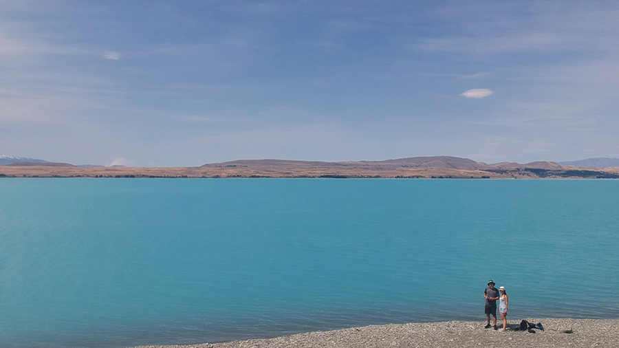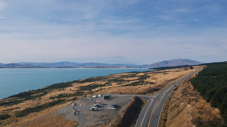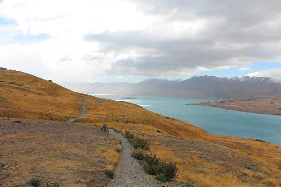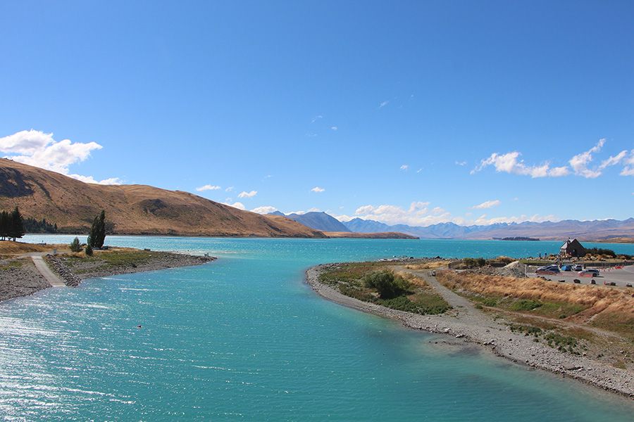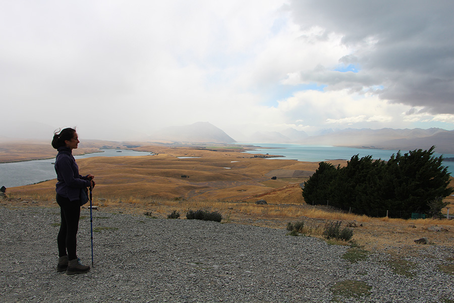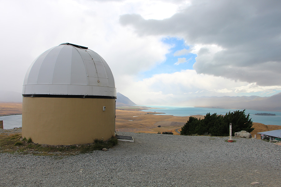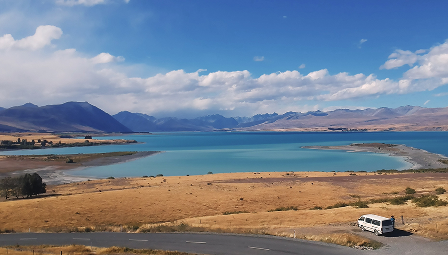 Nous prenons donc la route pour le lac Tekapo. Nous montons à l'observatoire du mont John pour avoir une vue d'ensemble sur le lac.