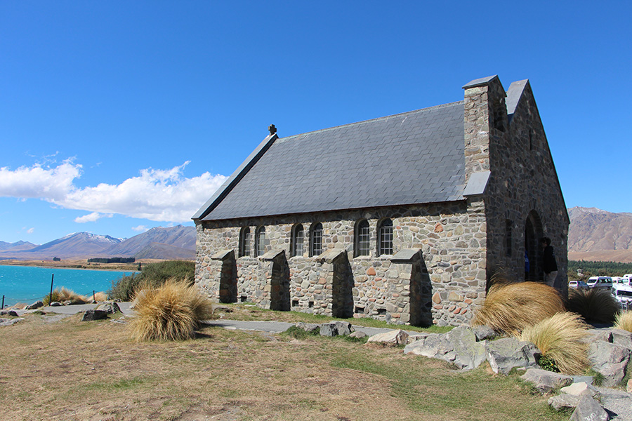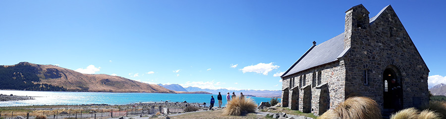 Nous nous rendons ensuite à pied à la petite église située sur les abords du lac et très prisée des touristiques et des kiwis pour leur mariage parait-il car il est vrai qu'elle est idéalement située.