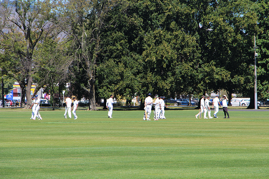 Nous prenons rapidement une douche froide au free camp de Caroline Bay puis nous partons pour Christchurch. Nous trouvons une place de parking pour le van à côté des terrains de criquet où on aura la chance de voir des personnes jouer. Thibault a beau observer les joueurs, les règles restent pour lui un mystère total !