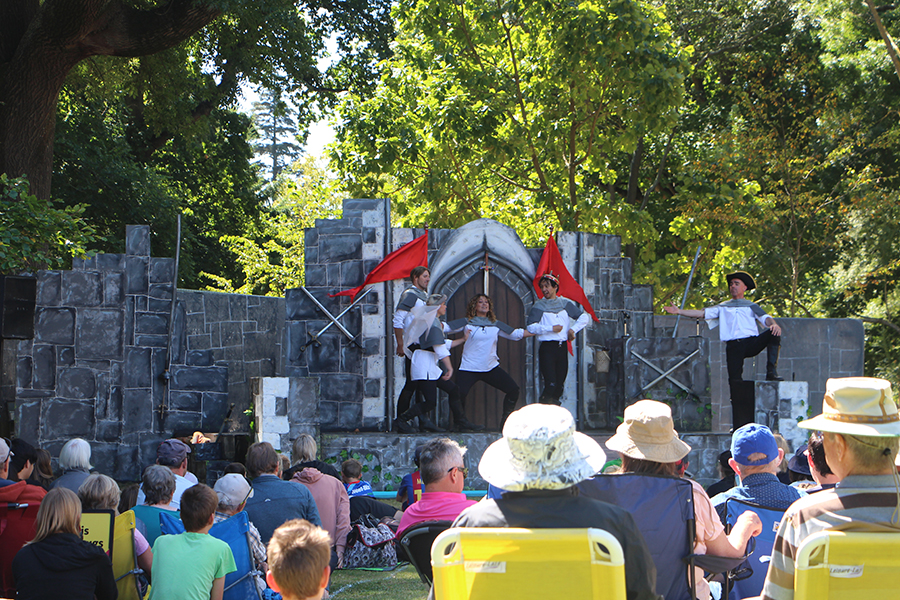 Il se déroule aussi une pièce de théâtre plein air sur le thème du roi Arthur ! On est amusé car cela nous rappelle la série Kamelott et aussi la série Game of Thrones qui prend place au moyen age et dans laquelle on peut y voir des pièces théâtre de rue surjouée comme celle-ci :) !