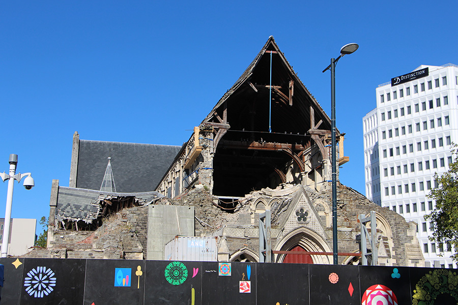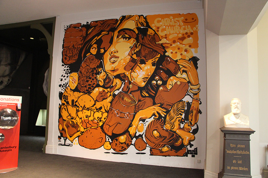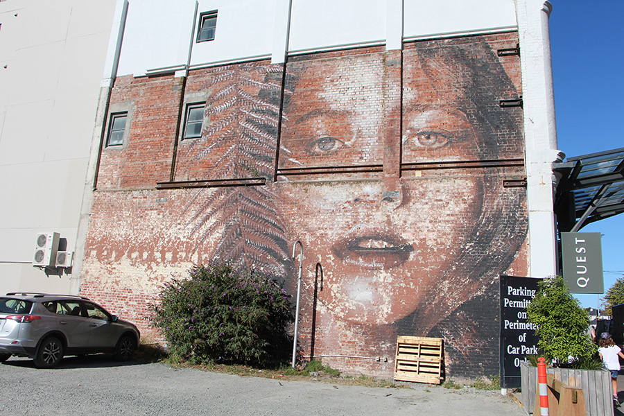 A la sortie du musée on a encore un peu d'énergie pour faire un petit tour dans Christchurch, on parcourt donc quelques rues, on peut voir que la ville présente encore les stigmates du tremblement de terre de 2011, certains bâtiments sont encore soutenus par des échafaudages et des grues parsèment le paysage. On sent cependant que la ville est jeune et dynamique, avec une vraie personnalité, certains murs mis à nu par le tremblement de terre on été décorés par des street artistes.