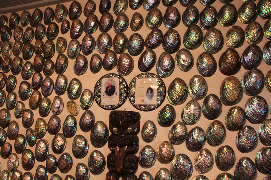 Enfin, on arrive au Canterbury museum où il y a différentes expositions très intéressantes sur le mode de vie des Maoris avant l'arrivée des colons, la reproduction d'une rue commerçante de Christchurch au 19ème siècle, les greenstone (pierre de jade) utilisées par les maoris, ou encore la reproduction d'un salon d'un couple qui en avait décoré les murs avec plus de 1000 coquillages trouvés sur les plages de NZ... On trouve la déco kitch à souhait mais apparemment la maison de ce couple était devenue une sorte d'attraction touristique !