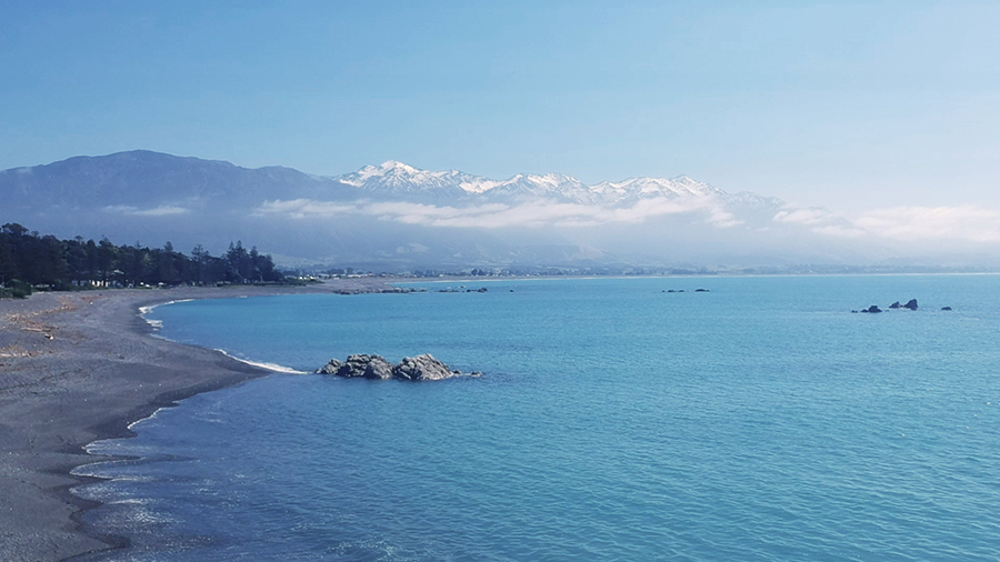 On s'arrête à Kaikoura pour la pause déjeuner, on se dit qu'un arrêt avec vue mer sera le bienvenu :). Thibault fait une prise de vue avec le drone au dessus de l'eau mais une vague se casse sur les rochers envoyant quelques gouttes en direction du drone... Les voyants du drone clignotent rouge signalant qu'un des moteurs à un problème. On avait déjà le moral dans les chaussettes de quitter l'île du Sud alors avoir endommagé le drone n’embellit pas notre journée... Allez, on positive et on se dit qu'on trouvera bien une solution pour le faire réparer à Auckland !