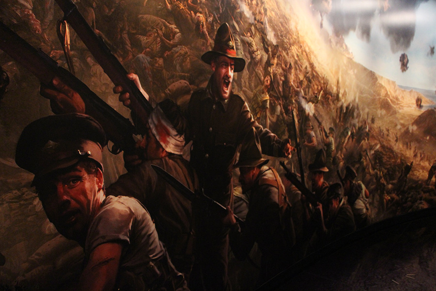 Aujourd'hui nous avons décidé de faire la visite du musée, gratuit encore une fois, Te Papa à Wellington qui propose notamment une expo sur la première guerre mondiale. L'exposition « Gallipoli : The scale of our war » nous captive dès l'instant ou l'on rentre dans la salle. Des sculptures géantes d'un réalisme bluffant réalisées par le studio WETA (studio d'effets spéciaux que nous avions visité lors de notre premier passage à Wellington il y a quelques mois) retracent et illustrent l'intervention des forces Néo-zélandaises et Australiennes au large de la Turquie afin de combattre l'empire Ottoman allié de l'Allemagne. Nous ne le savions pas avant de venir en Nouvelle-Zélande mais lorsque les britanniques sont entrés en guerre ils ont été rejoins par des milliers d'Australiens et de Kiwis.