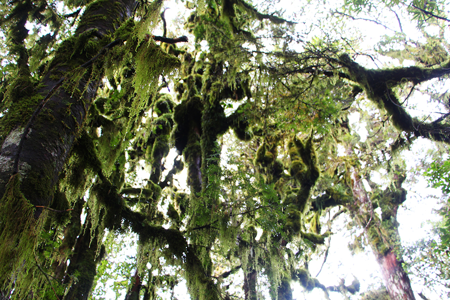 Aujourd'hui, nous faisons la route jusqu'au parking au pied du Mont Taranaki. Le temps n'est pas terrible. Nous préparons nos sandwich pour partir faire une randonnée de 2h que nous avons repérée. Au moment de partir, une grosse pluie démarre, nous mangeons donc nos sandwichs dans le van et partons ensuite, à une minute près, nous étions trempés (comme les 3 backpackers qui sont partis 5 minutes avant nous...). Nous filons donc faire la Veronica Loop, petite randonnée de 2h dans la forêt dense du Mont Taranaki. Le Taranaki est quand même impressionnant vu d'ici !