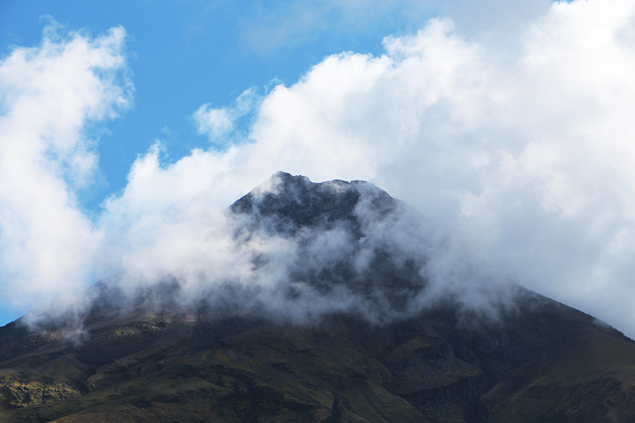 Nous commençons ensuite la vraie montée,le sommet du volcan se couvre par intermittence alors nous en profitons pour apprécier la vue de la plaine au fur et à mesure que nous montons.