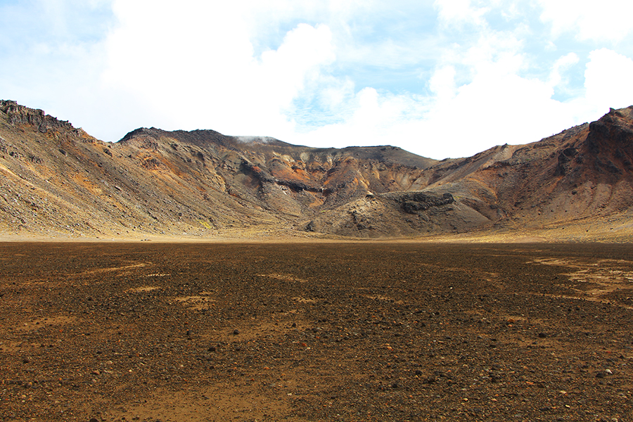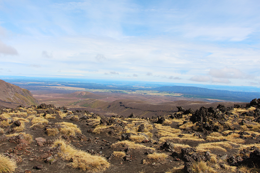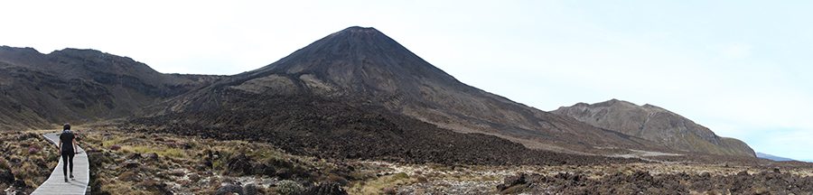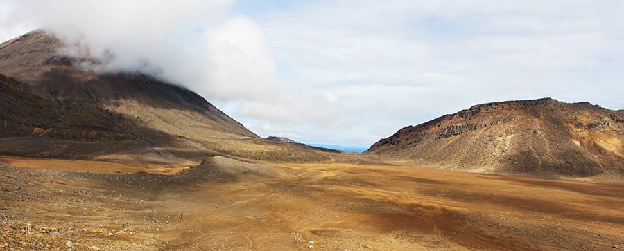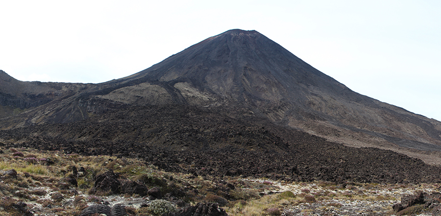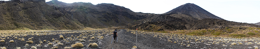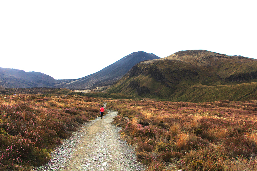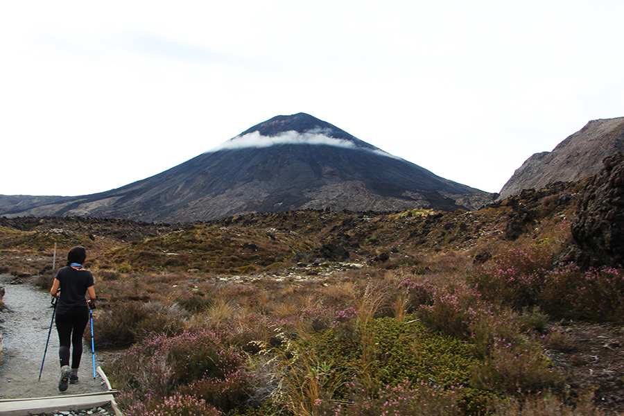 La navette compte une quinzaine de personnes. Elle nous dépose au départ et on trace pour être les premiers et avoir personne devant nous ! Le chemin commence doucement dans la plaine avec une superbe vue sur le volcan Ngauruhoe et franchement c'est beau !