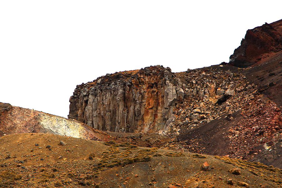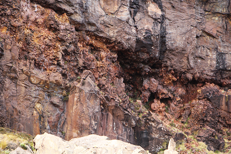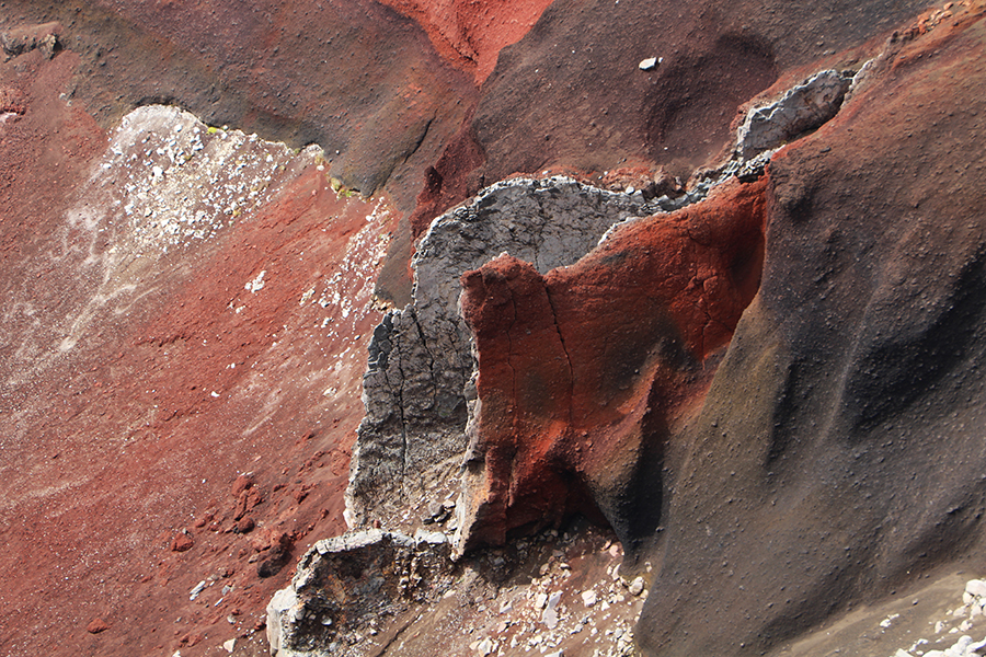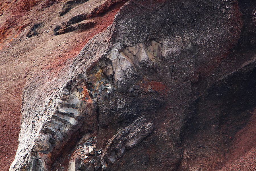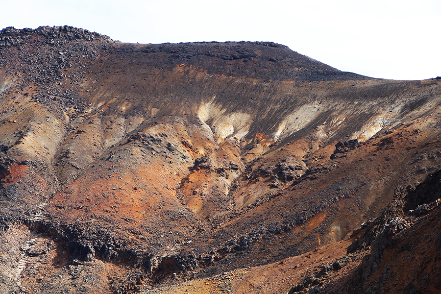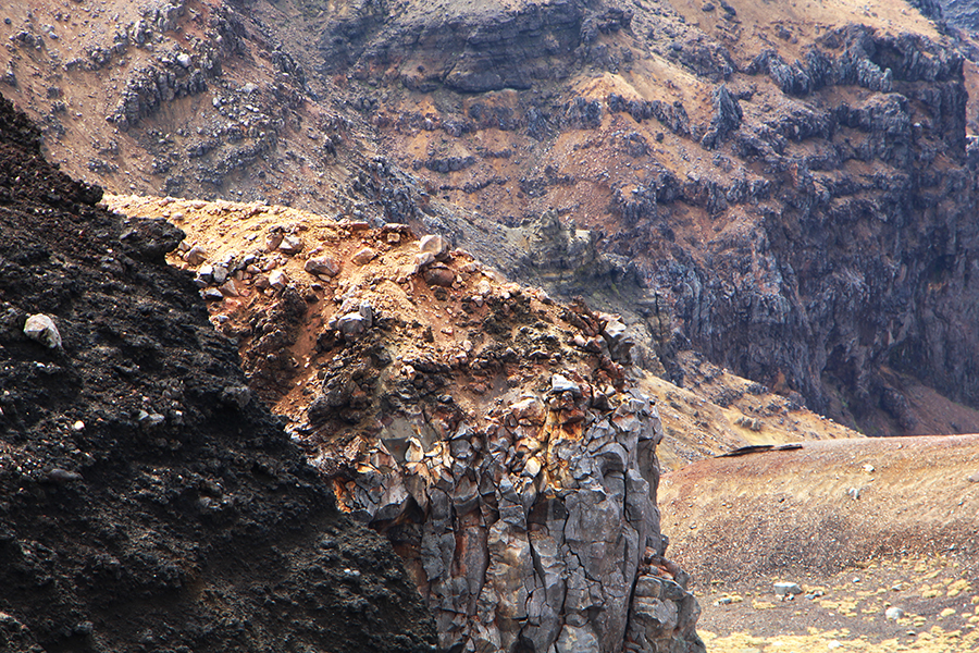 Nous prenons ensuite encore de l'altitude pour passer sur la crête et contempler l'autre côté du volcan, la vue et les couleurs sont impressionnantes.