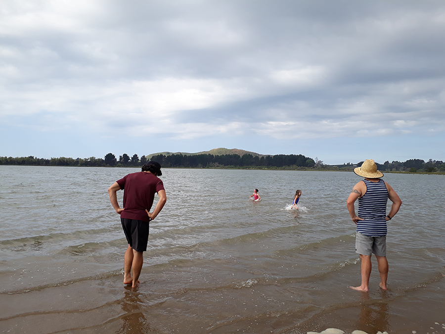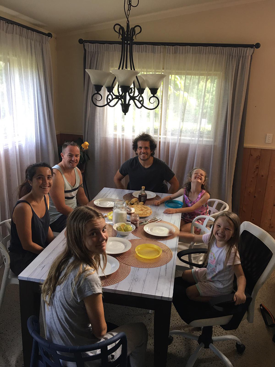 Nous passons vraiment une semaine exceptionnelle dans cette incroyable famille dont le rythme de vie nous impressionne. Ils ont en effet une maison avec un très grand jardin dans lequel ils font pousser fruits et légumes bios. Ils ont également un poulailler avec une dizaine de poules, et deux agneaux. La plupart de ce que l'on mange vient du jardin, les déchets sont réduits au minimum, les sacs plastiques n'existent pas, et tous les restes sont donnés aux poules qui elles, fournissent les œufs :) Les fruits et légumes du jardin sont délicieux et la diversité est incroyable : les classiques pommes, poires, figues, citrons, coings, tomates côtoient les plus atypiques bananes, noix de macadamia, poivrons, oranges, etc. Nous allons régulièrement chercher des avocats chez le voisin qui a une exploitation et l'autre voisin produit des bœufs bio ! Et pourtant, Amy travaille à mi-temps en télétravail pour une compagnie d'assurance d'Auckland pendant que Shane, ancien préparateur physique de la Navy néo-zélandaise, est coordinateur d'événements sportifs à Tauranga, et tout ça en gérant les 3 enfants ! Franchement, nous, on est bluffé ^^ Ils sont un vrai bel exemple que la combinaison de tout ça est possible ! En plus ils aiment mangé comme nous alors on passe notre temps à se faire découvrir les spécialités de nos deux pays, du bœuf bourguignon aux pavlova !