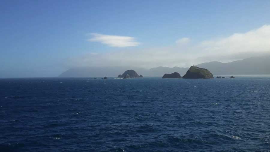 Après trois heures de traversée, l'île du sud se dévoile par ses fjords du nord, la vue depuis le bateau est magnifique.
