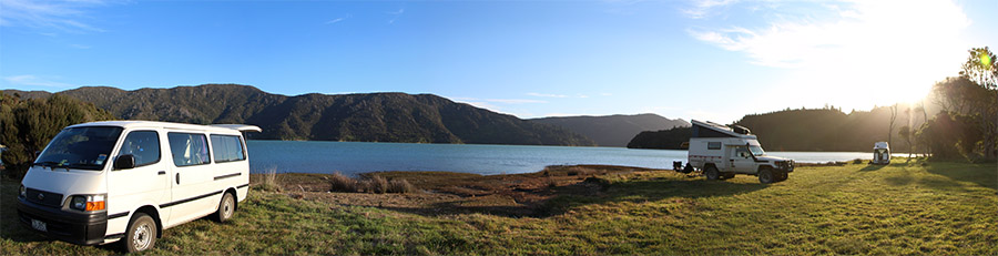 Nous dormons chaque soir au free camp de Ohauparuparu Bay (sans fautes d'orthographes ^^). Le freecamp est magnifique et offre une vue splendide sur le fjord !