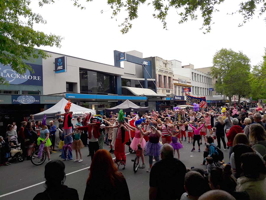 En fin d'après-midi, la ville de Nelson organise la clôture de leur « Nelson Arts Festival », au programme une parade dans les rues de la ville où défilent petits monstres aux têtes de papiers mâchés qui semblent un peu apeurés par la foule de spectateurs, des petits guerriers maoris dans leurs pirogues en carton, écoliers et profs se prêtent au jeu de cette « weird and wonderful » Parade (comprenez étrange et merveilleux, c'était le thème !) . Il se dégage une atmosphère vraiment bon enfant de cette ville !