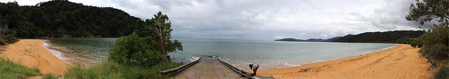 On reprend la route et arrivons au camping de Totaranui au nord d'Abel Tasman, la camping se trouve au bord de plage . A noter qu'Abel Tasman Coast Track fait parti de ce qui s'appelle les « Great Walks » (les grandes et belles randonnées de NZ). Celle-ci comprend une partie à pied et une partie en canoë car la côte est apparemment magnifique ! Nous pensions faire du canoë dans la baie du camping l'après-midi mais le temps tourne et finalement on aura de la pluie toute l'après-midi...bon et bien le canoë tombe à l'eau pour aujourd'hui ! La plage d'un sable orangé est quand même jolie !