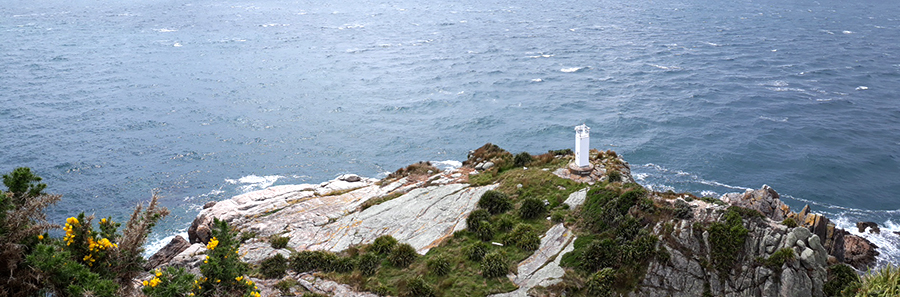 Le camping est prêt d'un estuaire qui est indiqué comme franchissable à marée basse. Nous avions tout prévu pour être à l'estuaire pile à la marée basse et pourtant nous tentons à plusieurs reprise de le franchir mais sans succès, nous sommes chaque fois bloqué par un bras de mer trop large pour être franchi...une fois les pieds bien trempés après être tombé dans l'eau plusieurs fois, nous finissons par enlever nos chaussures pour franchir l'estuaire les pieds dans l'eau. On aurait mieux fait de commencer par là, ça nous aurait éviter d'avoir tous les deux les chaussures complètement trempées au bout de 15 minutes de marche à peine...