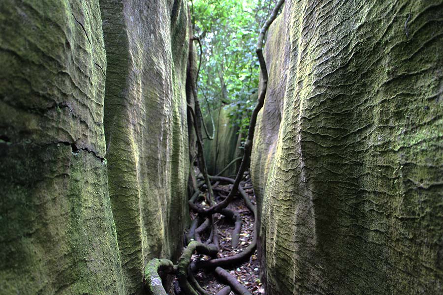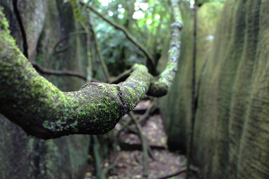 Comme un peu partout dans les campings, il n'y a pas de poubelles. Nous demandons donc au ranger du camping où jeter nos poubelles, il nous indique une déchetterie sur la route. Arrivée là bas celle-ci est fermée sans raisons...mais juste à côté de la déchetterie se trouve un panneau où est indiqué « Labyrinth Rocks ». Curieux, nous allons voir et nous découvrons un parcours gratuit entre des rochers naturels créé par un géologue. Le site est ponctué de petits objets à trouver entre les rochers ! De plus, la jungle a repris ses droits dans le labyrinthe lui conférant un réel aspect « Indiana Jones » :)